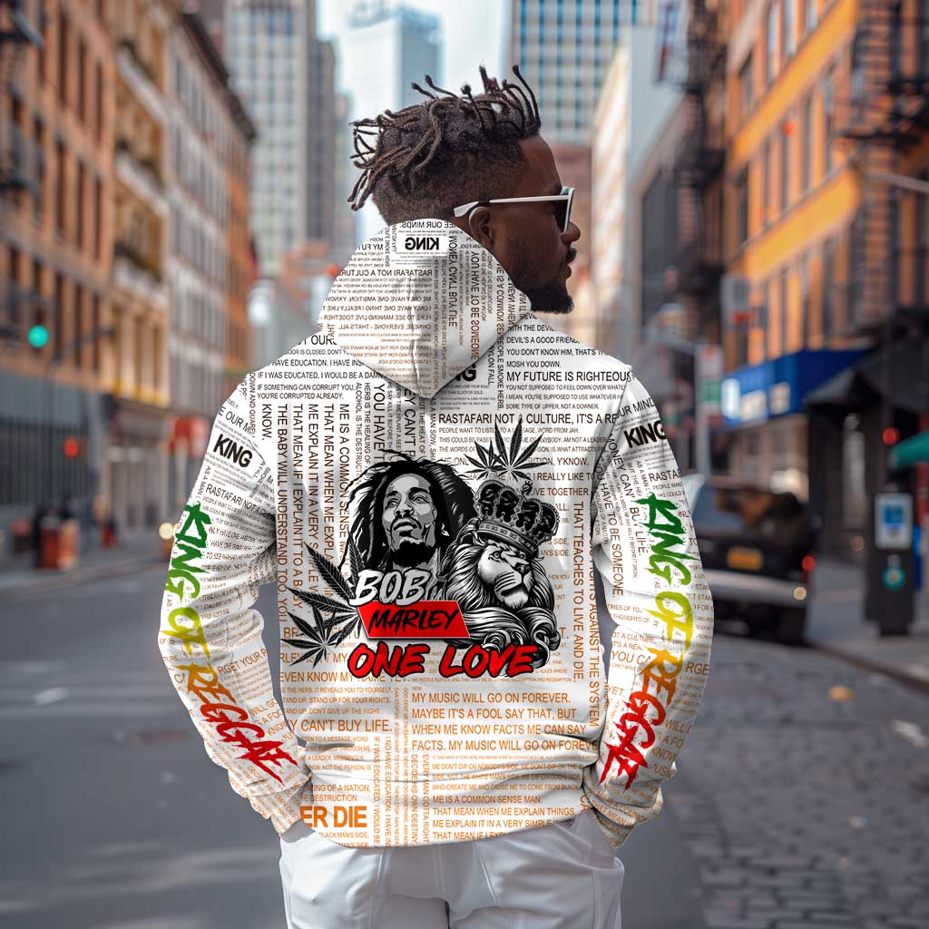 Afro King of Reggae Legend Bob Zip Hoodie Rastafari Lion Cannabis Typography Style