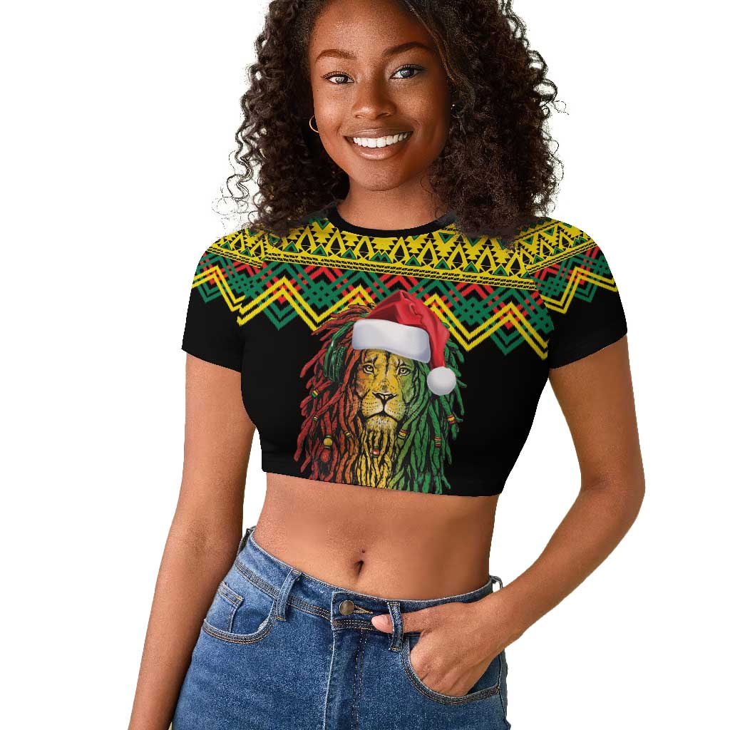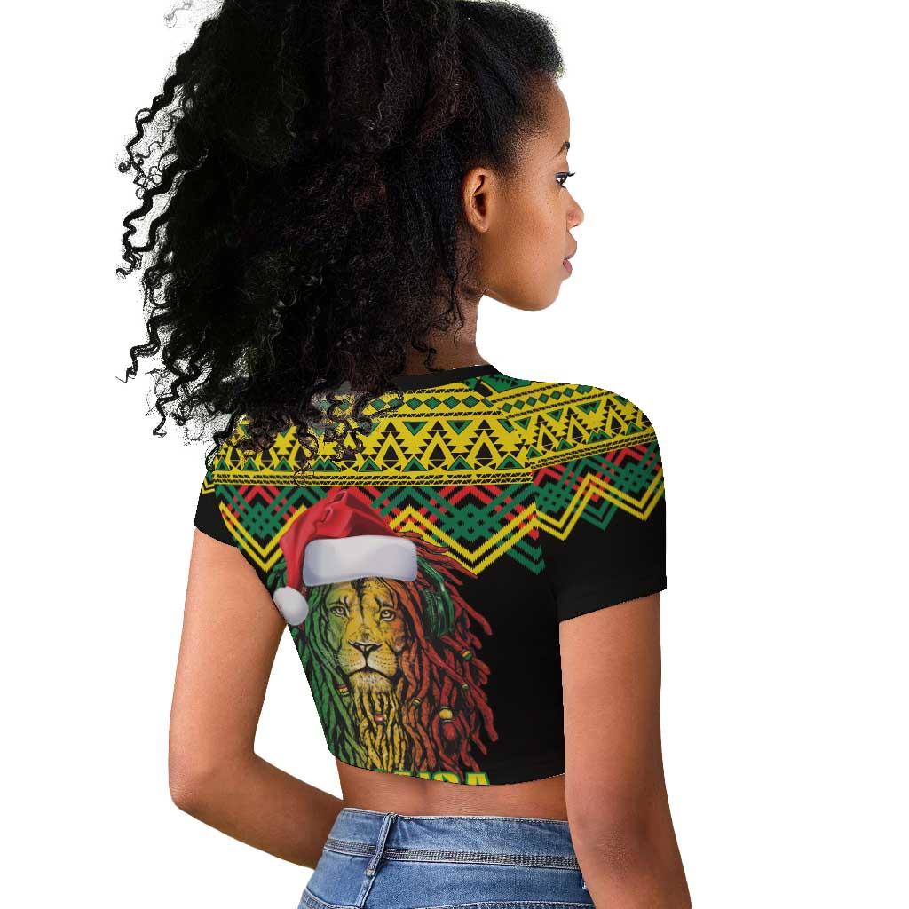 Black Jamaican Christmas Raglan Cropped T shirt Reggae Lion With Kente Pattern