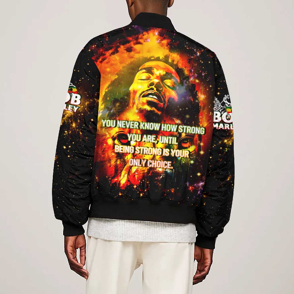 Bob King Of Reggae Rastafari Lion Bomber Jacket You Never Know How Strong You Are DT02