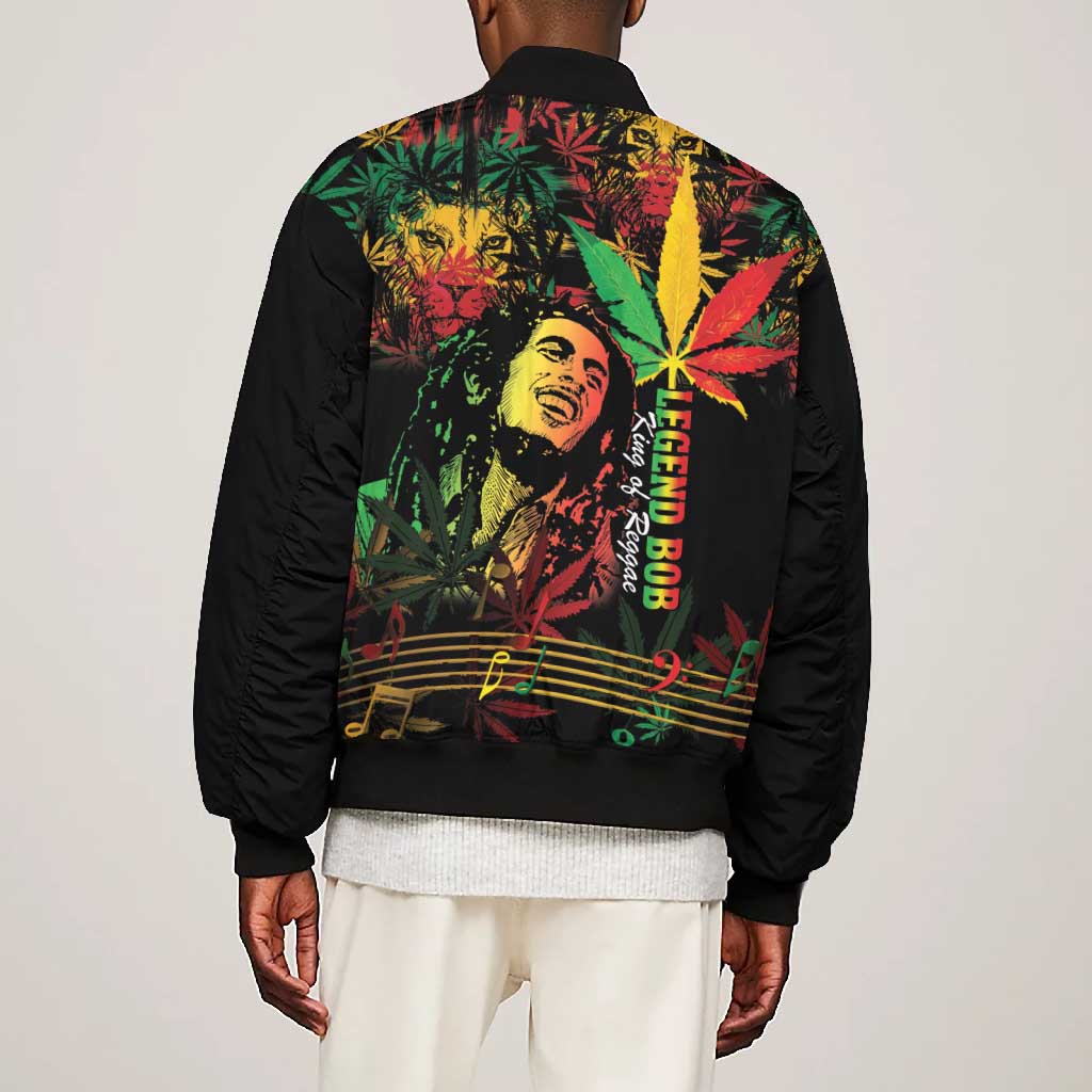 King Of Reggae Legend Bob Bomber Jacket Rasta Cannabis