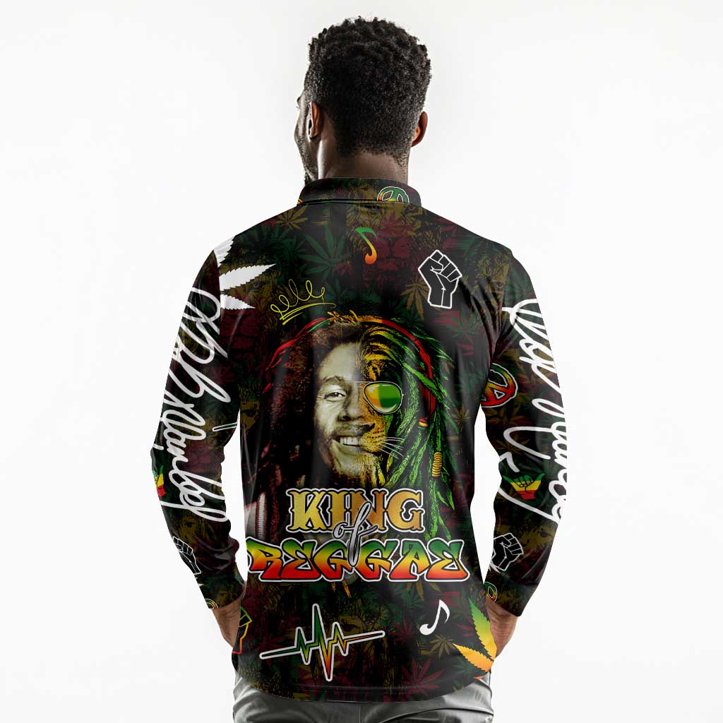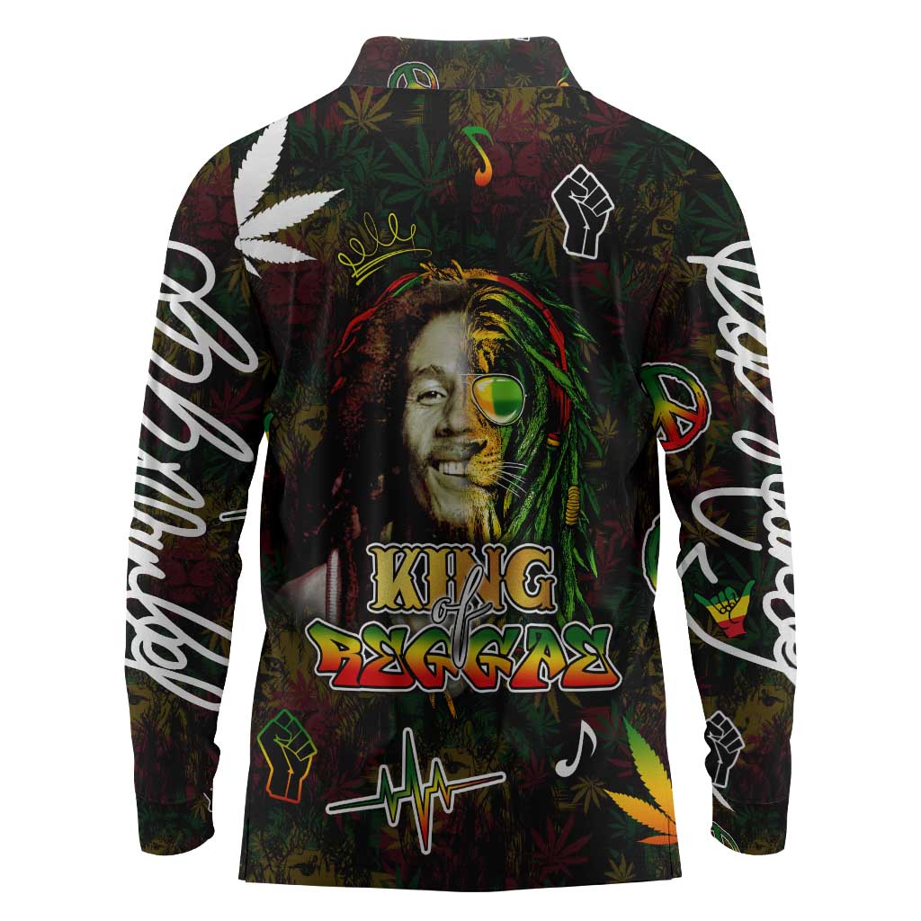 King Of Reggae Legend Bob Long Sleeve Polo Shirt Peace and Love