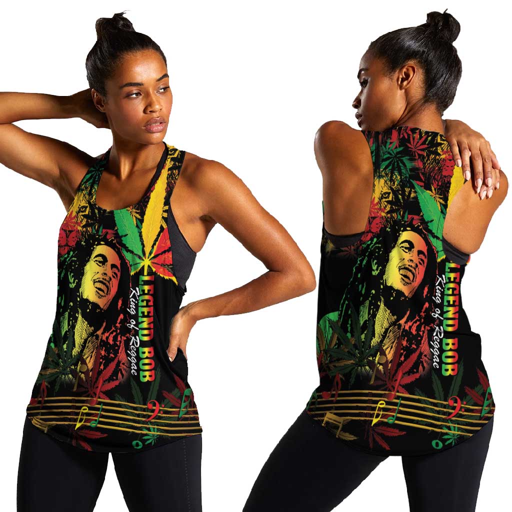 King Of Reggae Legend Bob Women Racerback Tank Rasta Cannabis