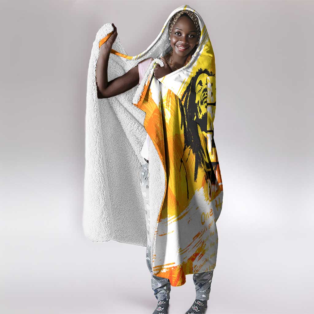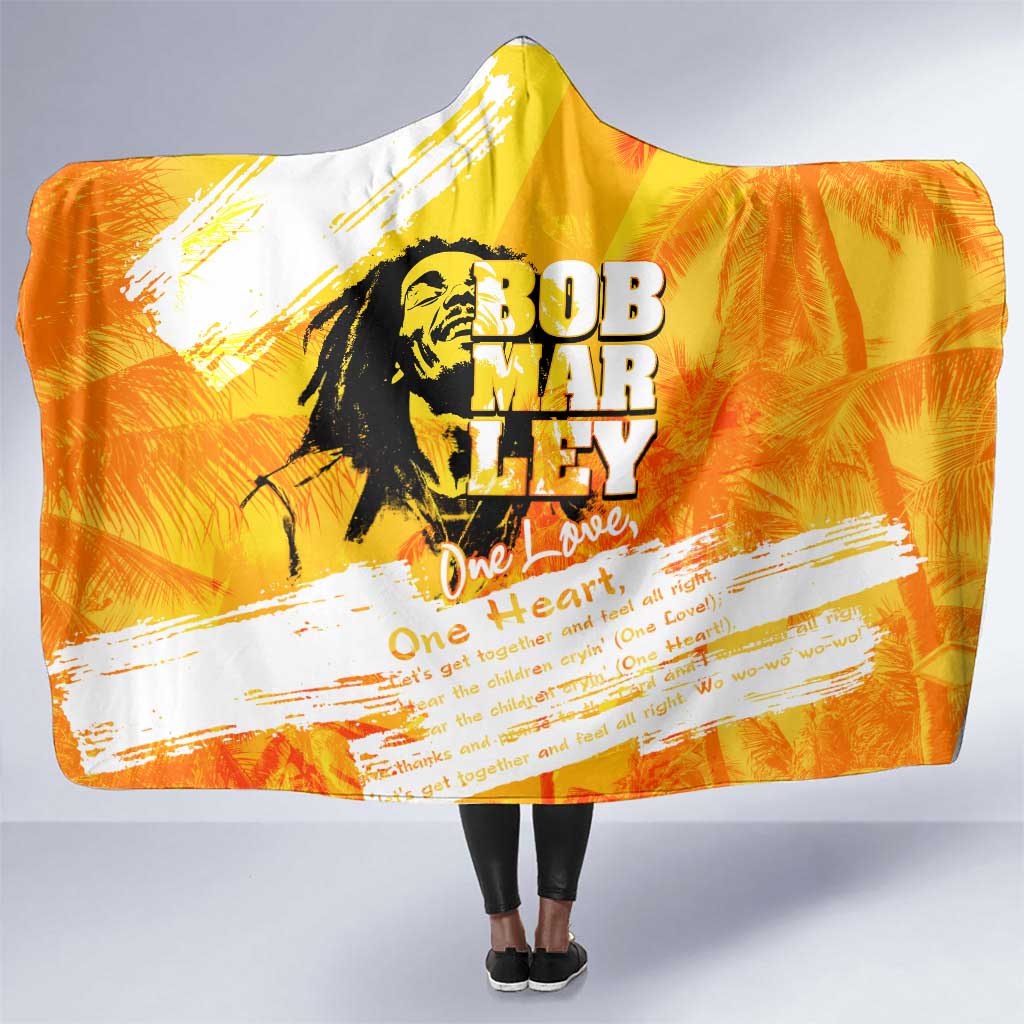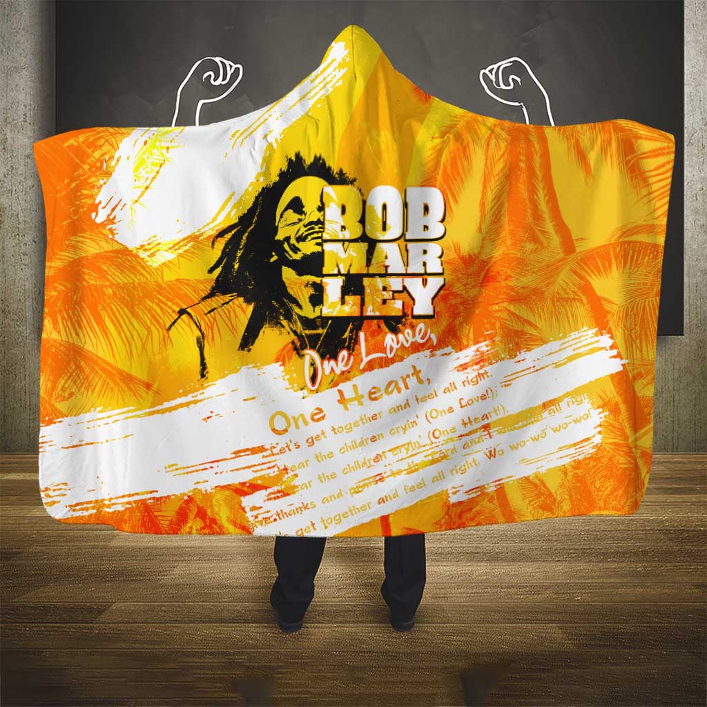 Legend Bob Reggae Afro Hooded Blanket One Love One Heart Tropical Leaf