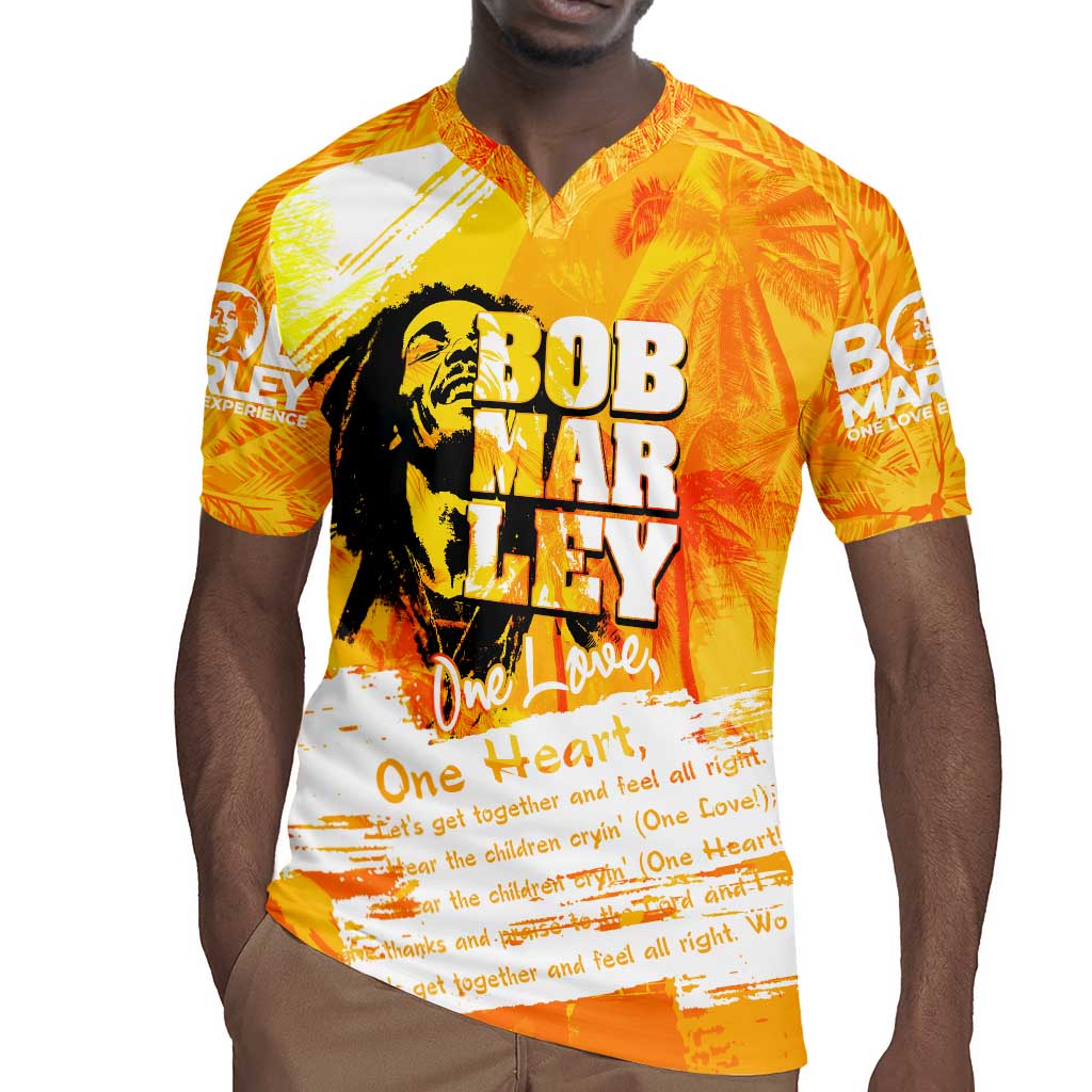 Legend Bob Reggae Afro Rugby Jersey One Love One Heart Tropical Leaf