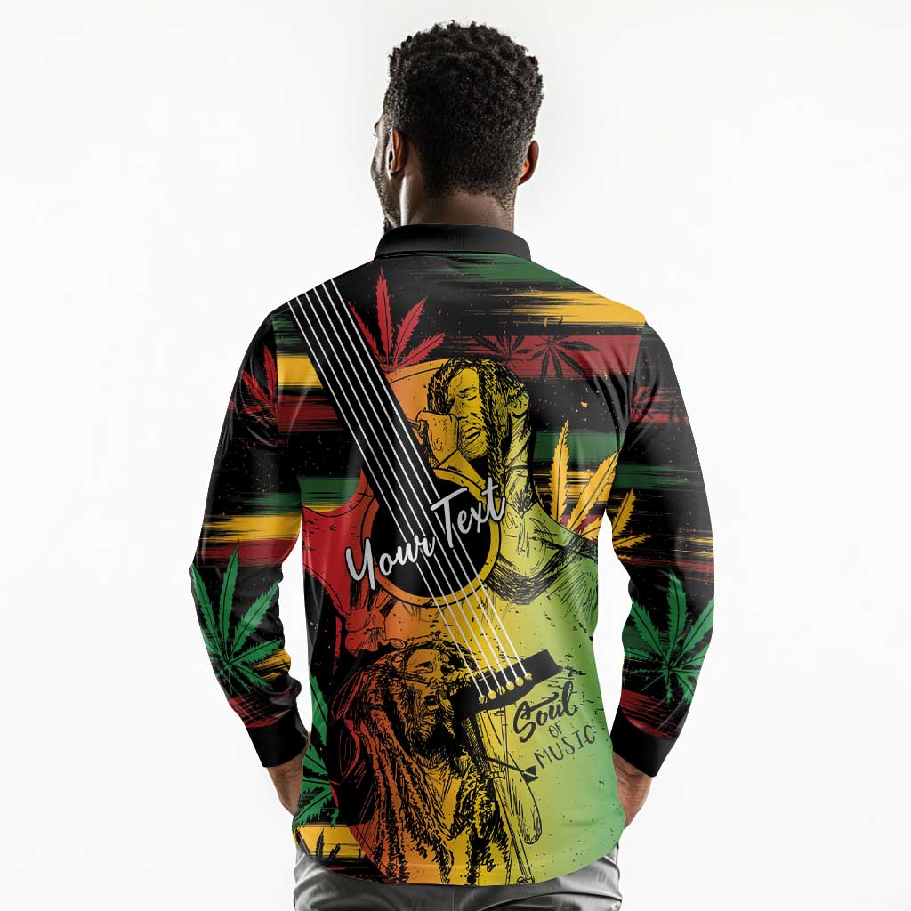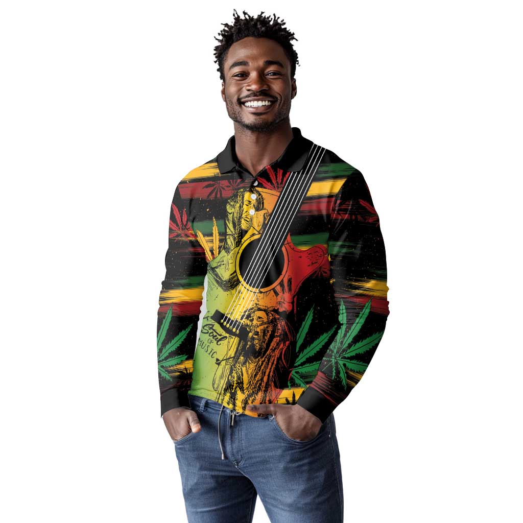 Personalised Afro Reggae Long Sleeve Polo Shirt Soul of Music Sketch Style
