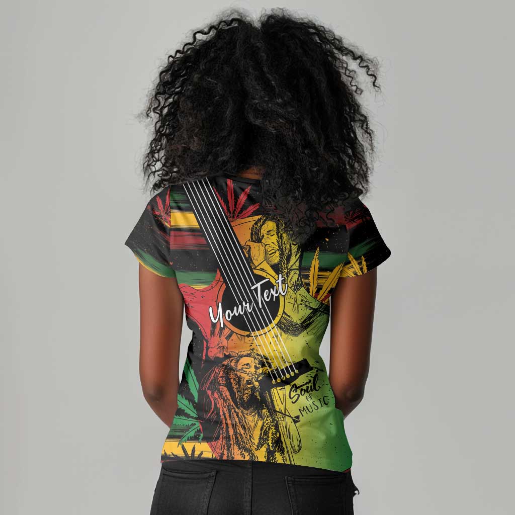 Personalised Afro Reggae Women V-Neck T-Shirt Soul of Music Sketch Style