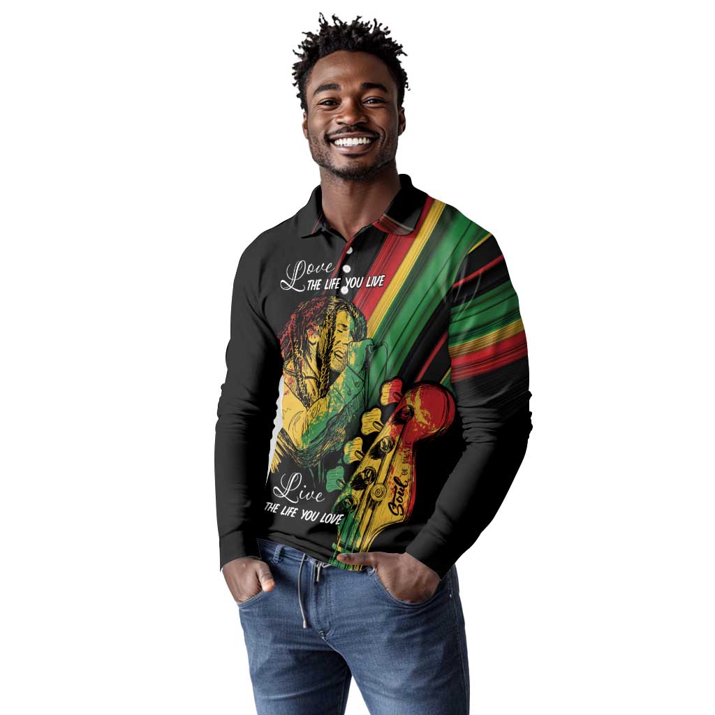 Personalised Afro Vibes Long Sleeve Polo Shirt Reggae King - Live The Way You Love