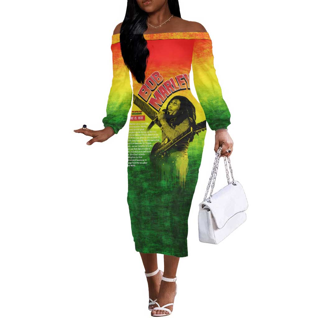 The Real Legend Bob Off The Shoulder Long Sleeve Dress African Jamaica Reggae