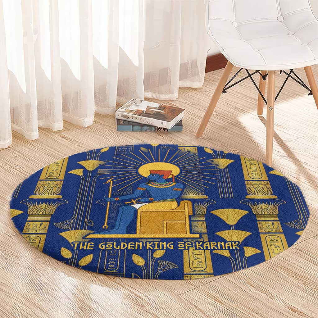 Amun Round Carpet Ancient Egyptian Hieroglyphic, Pharaoh and Scarab
