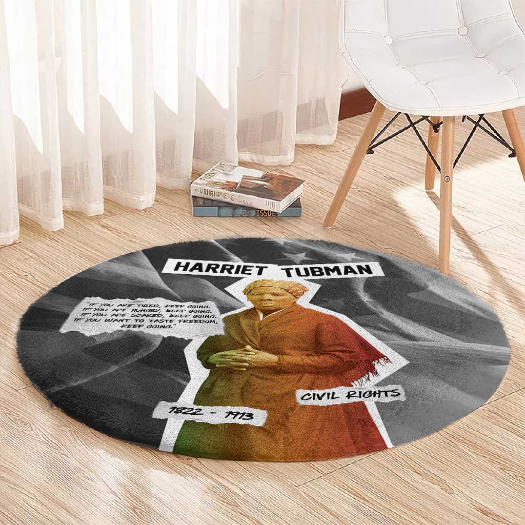 Harriet Tubman Round Carpet American Flag Background Civil Rights Quote Keep Going Tribute Design