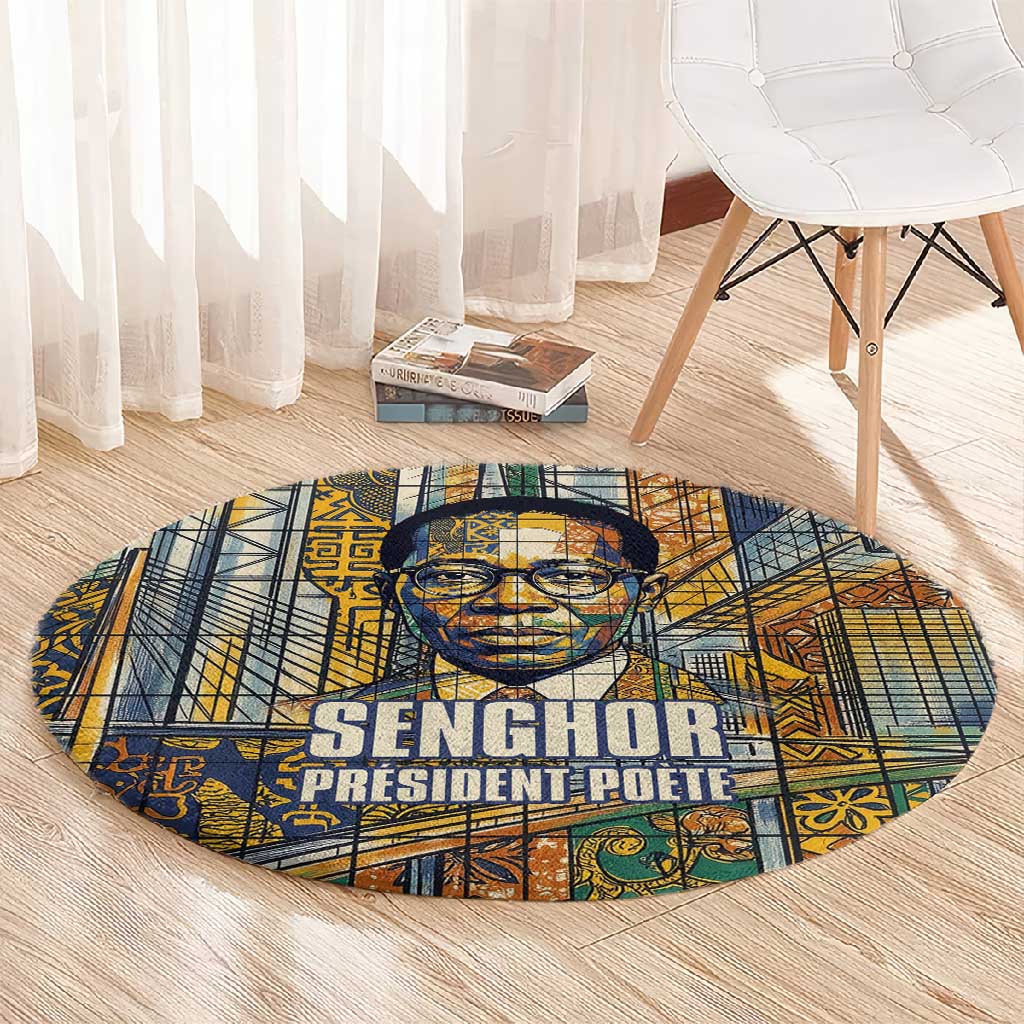 Léopold Sédar Senghor Round Carpet President Poete Portrait Futuristic African Robotic Handshake Earth and Flowers Unity