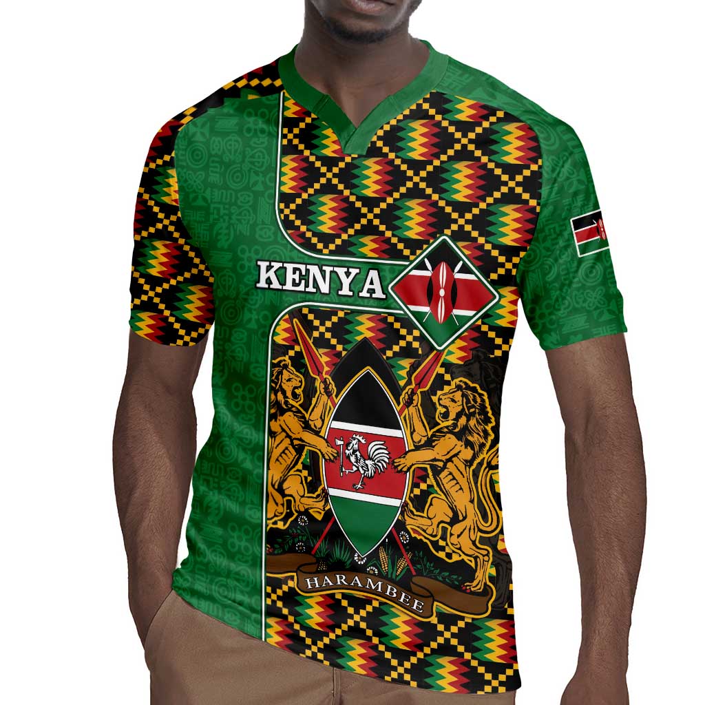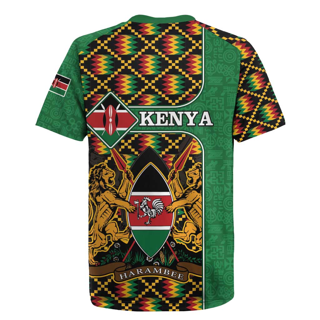 Kenya Rugby Jersey - Kente Pattern, Coat Of Arms Design LT15