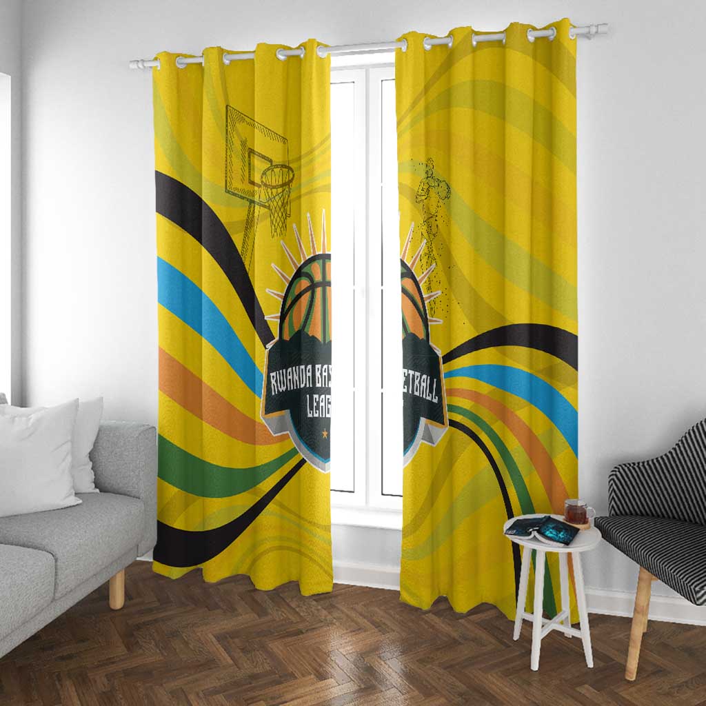 Rwanda Window Curtain with Basketball League Court Hoop Yellow Wave Spirit