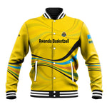 Rwanda Baseball Jacket with Basketball League Court Hoop Yellow Wave Spirit