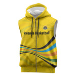 Rwanda Sleeveless Zip Hoodie with Basketball League Court Hoop Yellow Wave Spirit