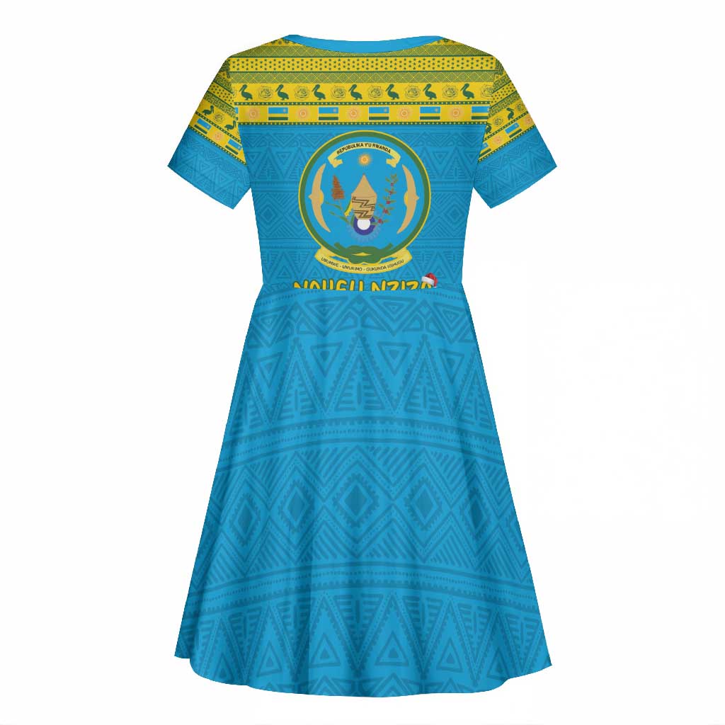 Afro Rwanda Christmas Kid Short Sleeve Dress Noheli Nziza Coat Of Arms - African Pattern LT15