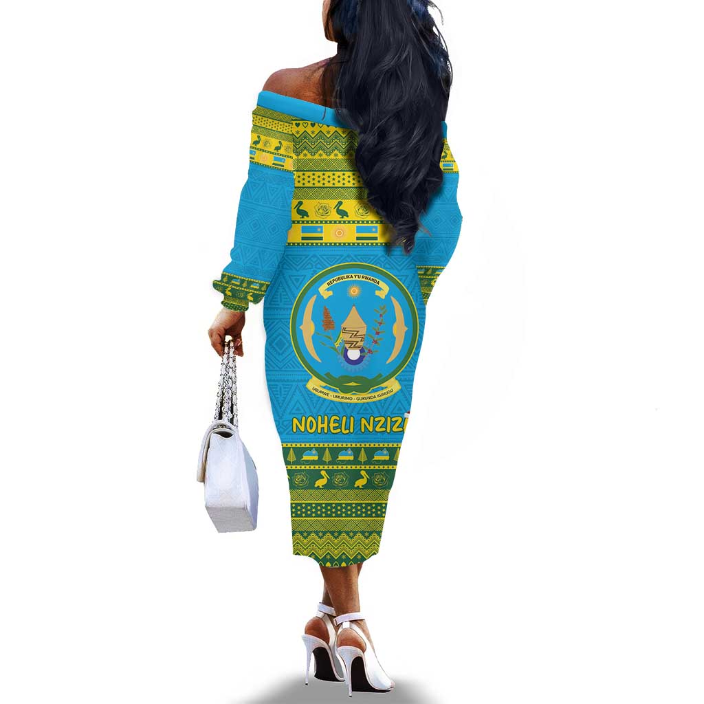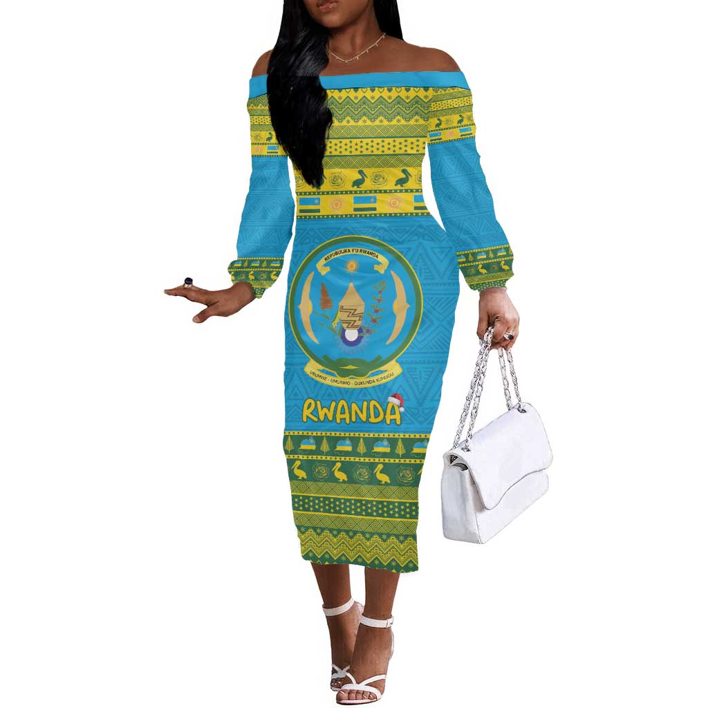 Afro Rwanda Christmas Off The Shoulder Long Sleeve Dress Noheli Nziza Coat Of Arms - African Pattern