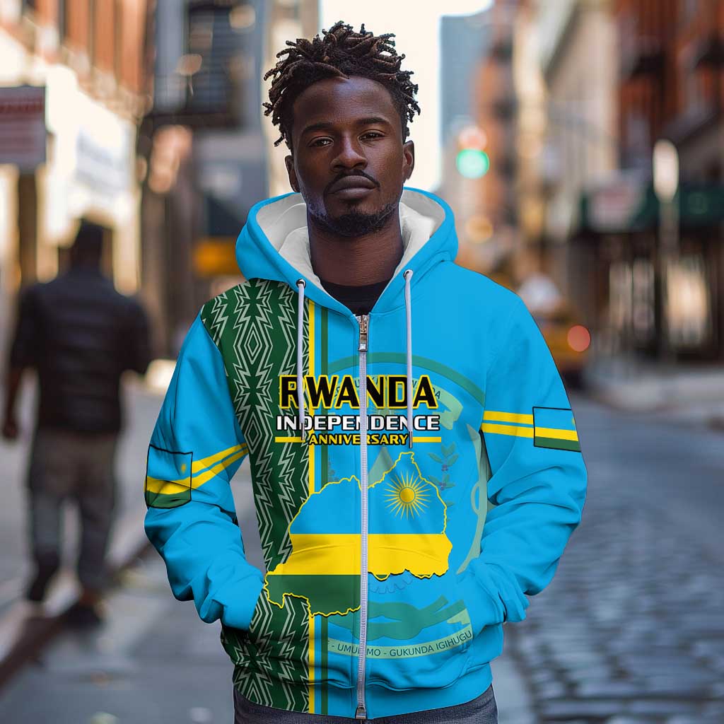 Personalised 1 July Independence Day Rwanda Zip Hoodie African Imigongo Happy 61st Anniversary