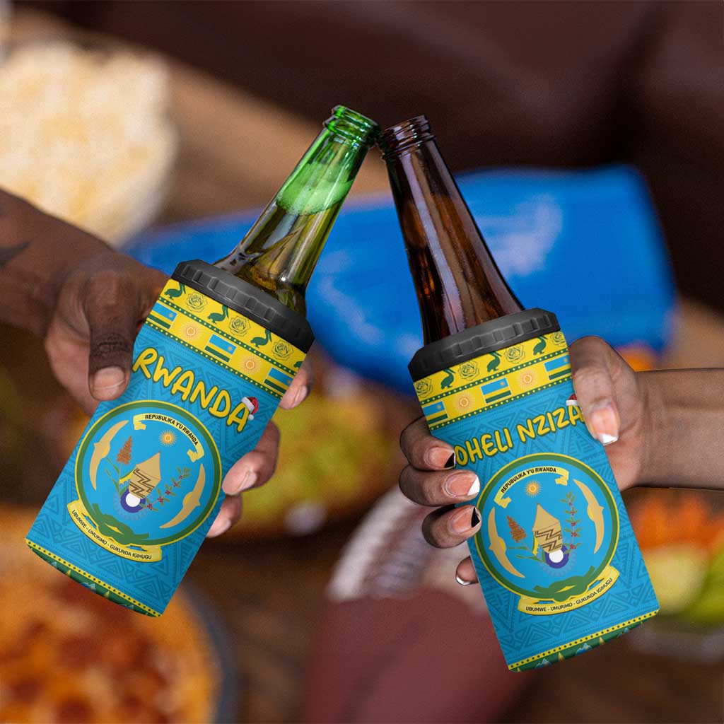 Afro Rwanda Christmas 4 in 1 Can Cooler Tumbler Noheli Nziza Coat Of Arms - African Pattern