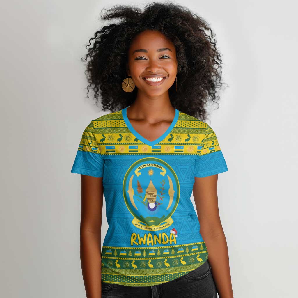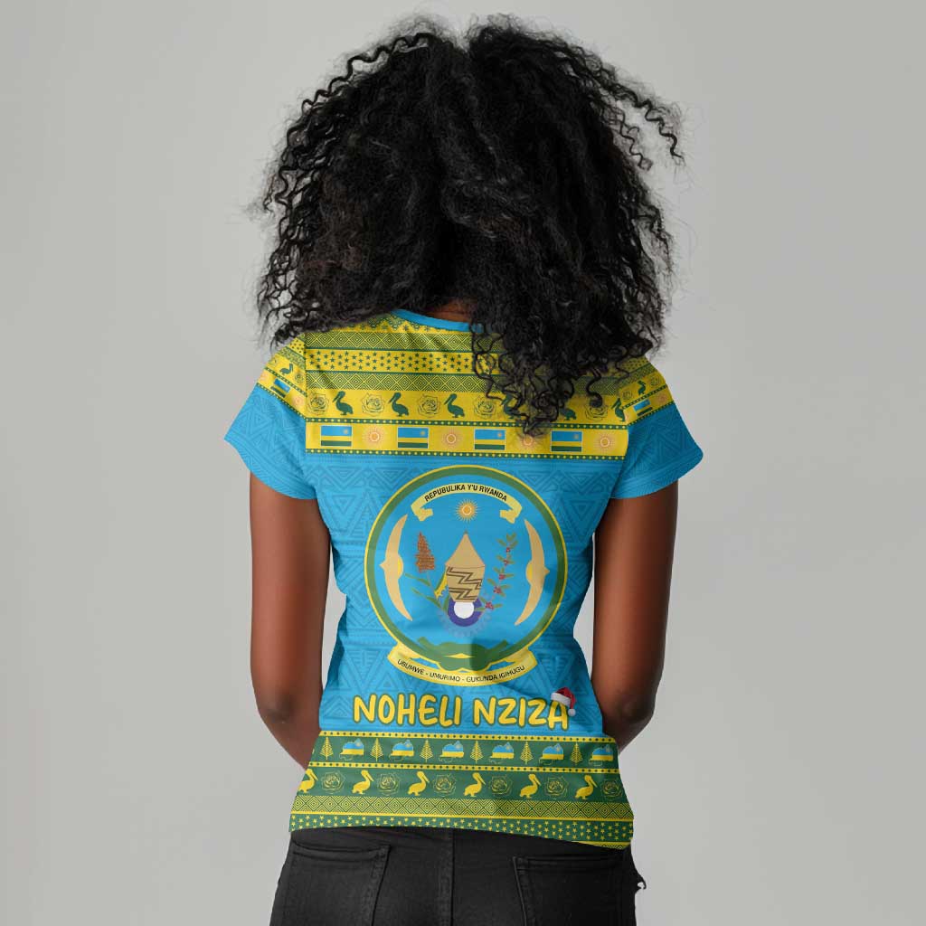 Afro Rwanda Christmas Women V-Neck T-Shirt Noheli Nziza Coat Of Arms - African Pattern
