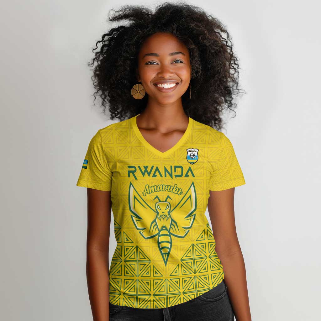 Custom Jamhuri ya Rwanda Football Women V-Neck T-Shirt Go Amavubi Go