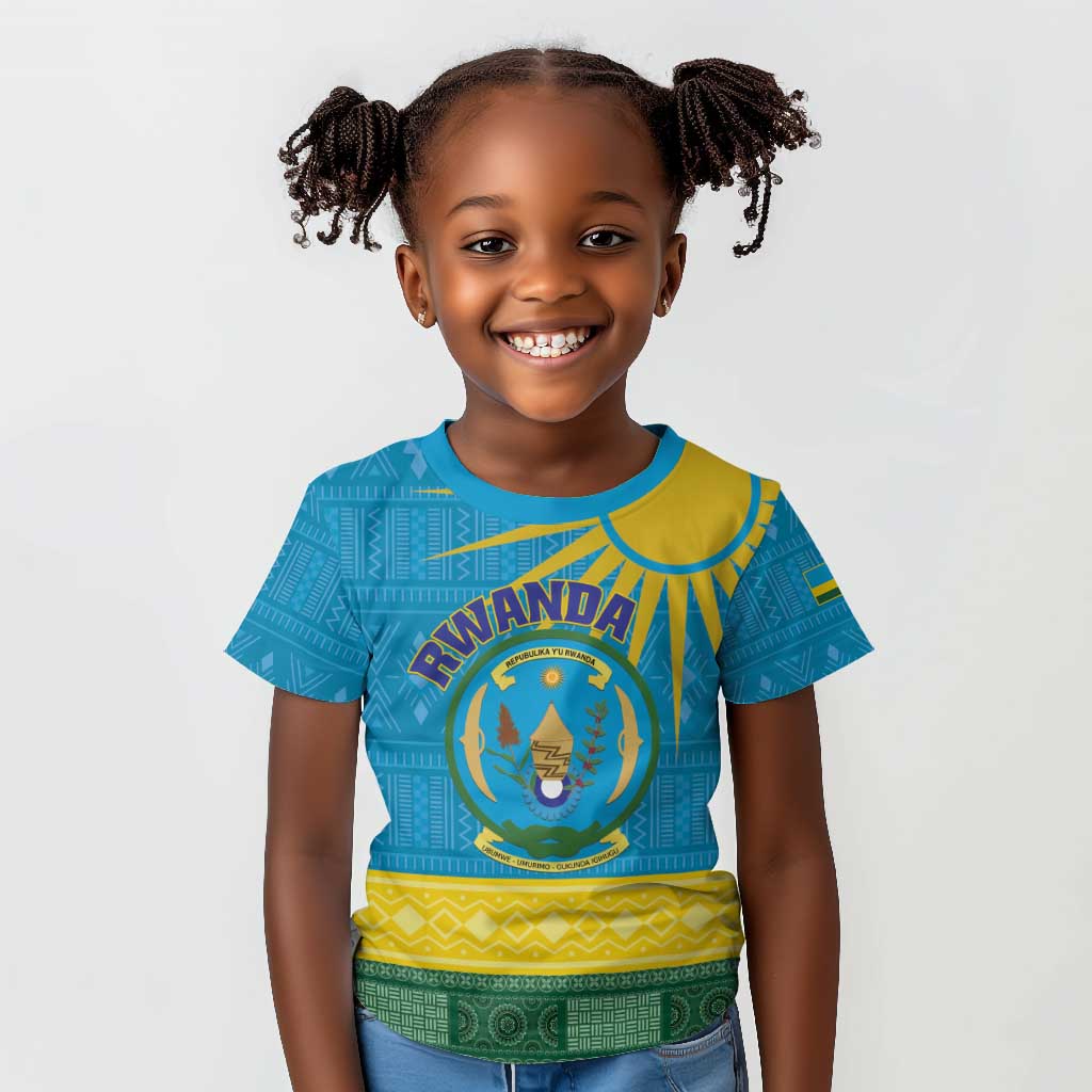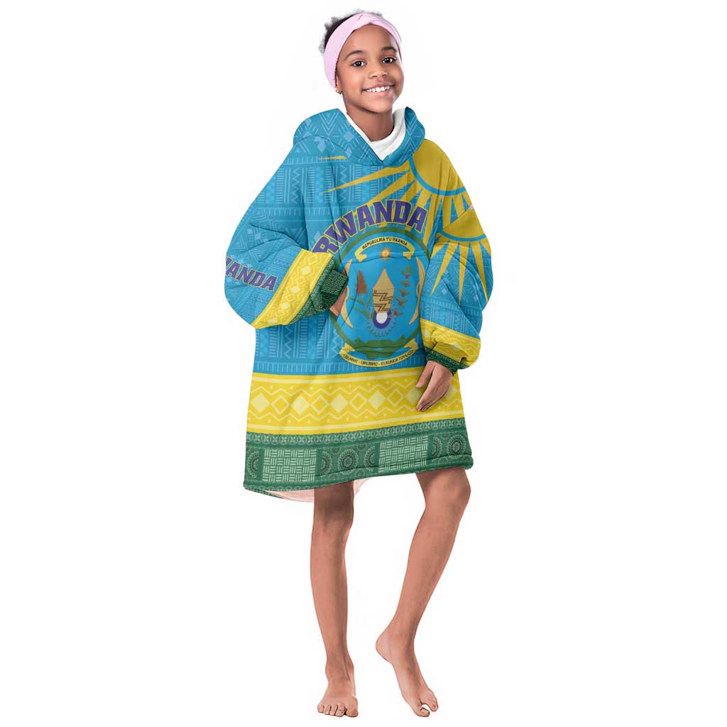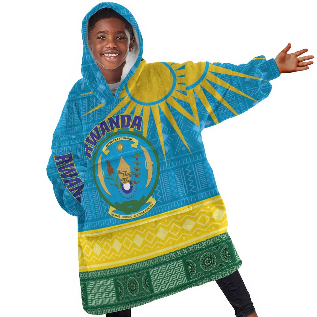 Personalized Rwanda Kid Wearable Blanket Hoodie Coat of Arms With African Pattern