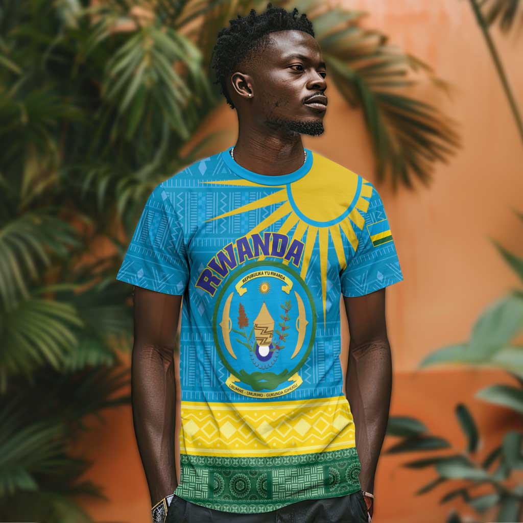 Personalized Rwanda T shirt Coat of Arms With African Pattern
