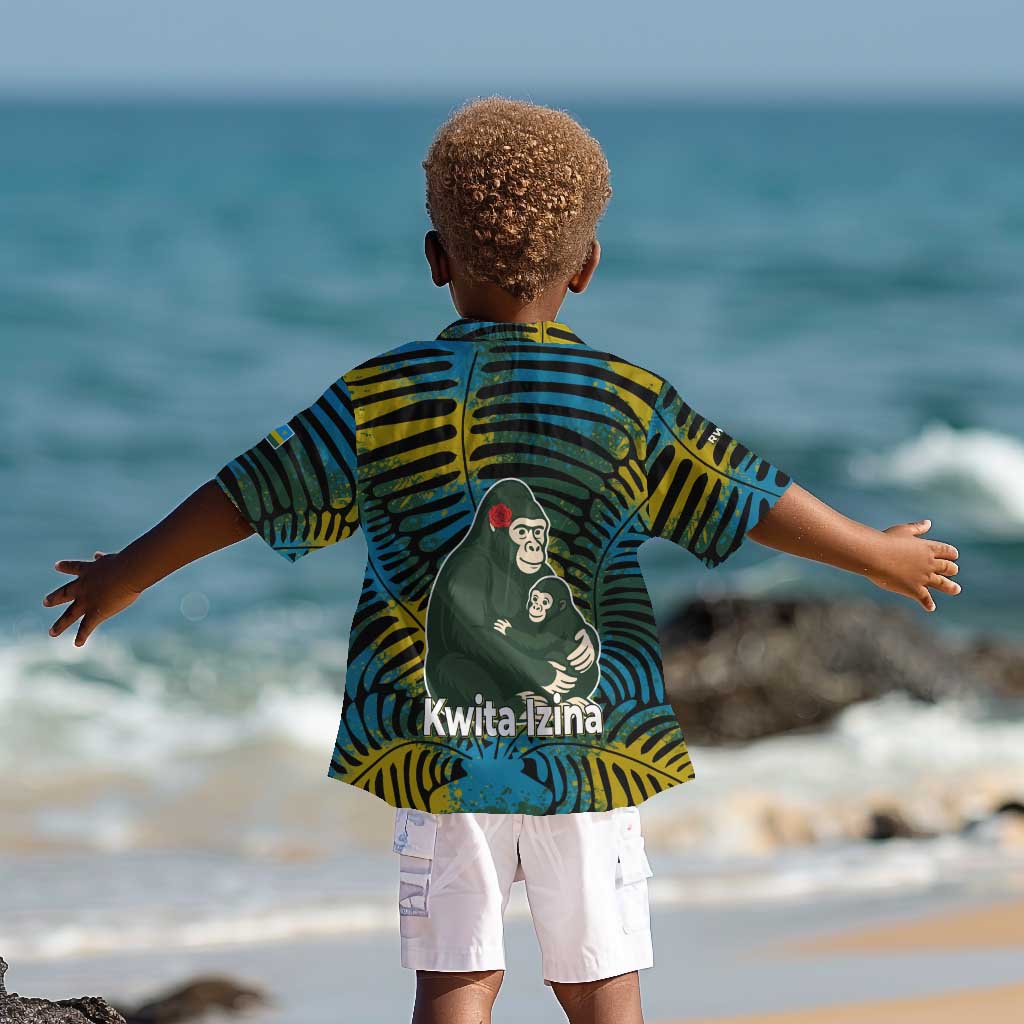 Rwanda Kid Hawaiian Shirt with Gorilla Family Kwita Izina Leaf Jungle Spirit