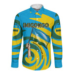 Rwanda Long Sleeve Button Shirt with Imigongo Spiraling Flag Hand Wave Time Spirit
