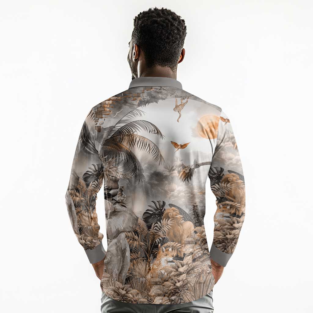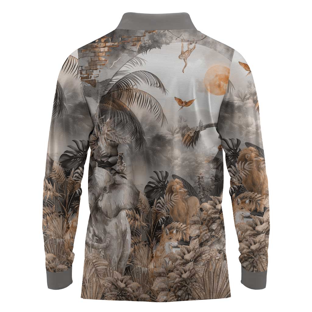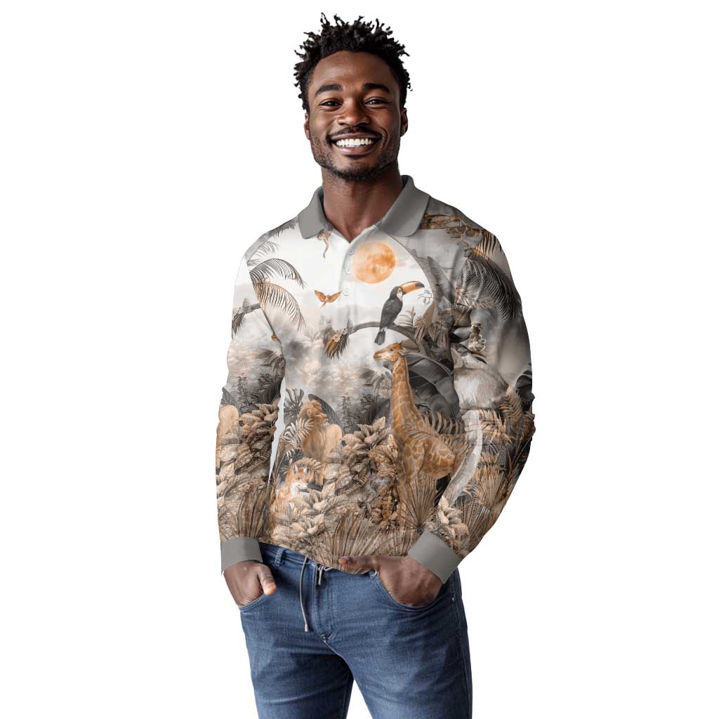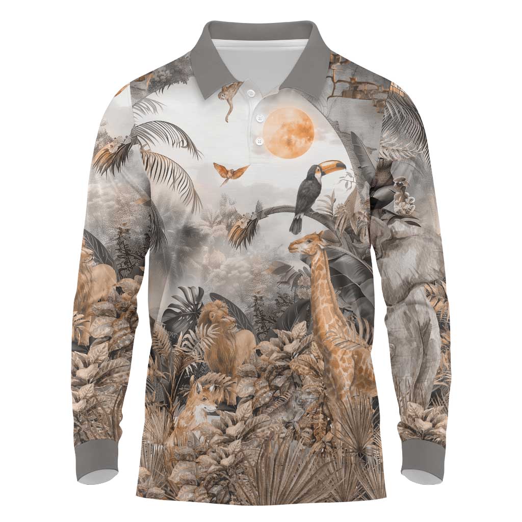 Afro Safari Animals Long Sleeve Polo Shirt LT18