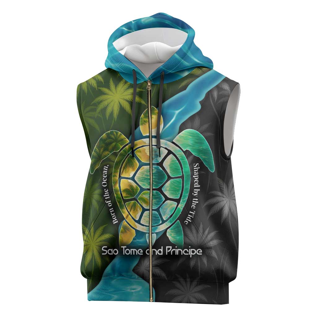 Sea Turtle Sao Tome and Principe Sleeveless Zip Hoodie Ocean Tide and Tropical Palm