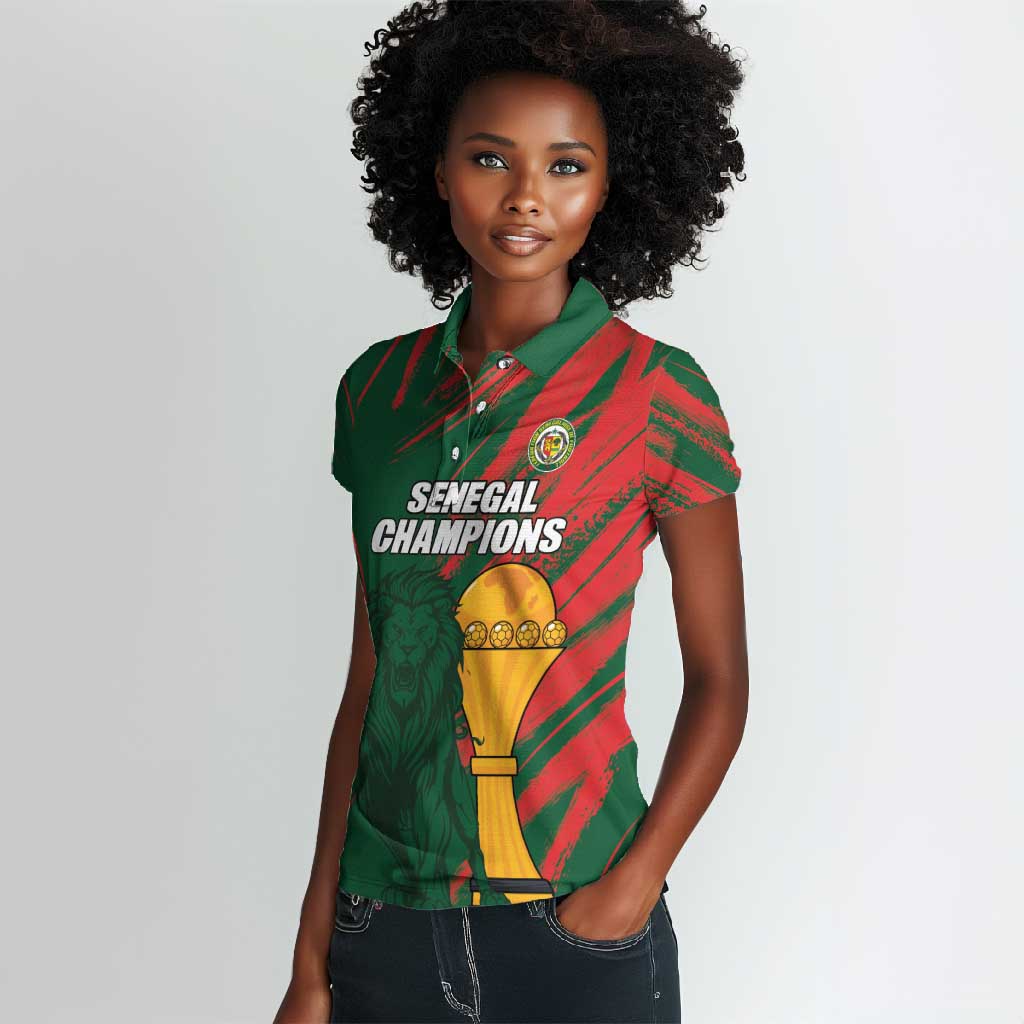 Custom Senegal Champions Football Women Polo Shirt Lions of Teranga Rise Again