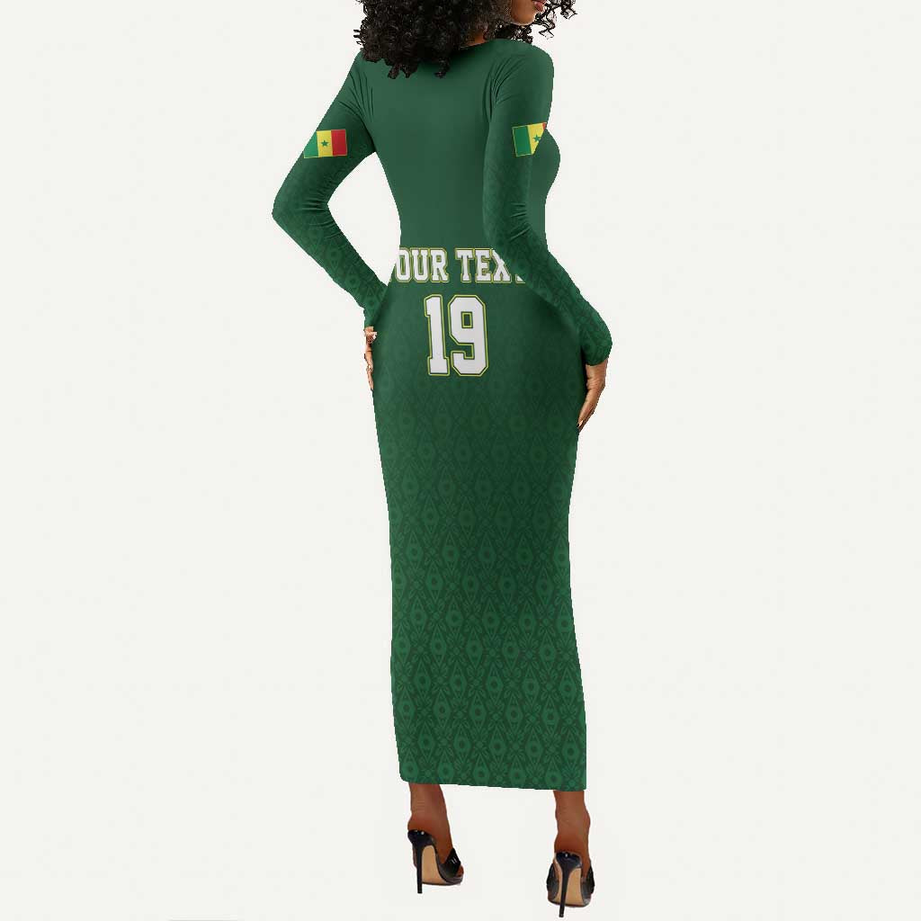 Senegal Football Champions Custom Long Sleeve Bodycon Dress Lions of Teranga Rise