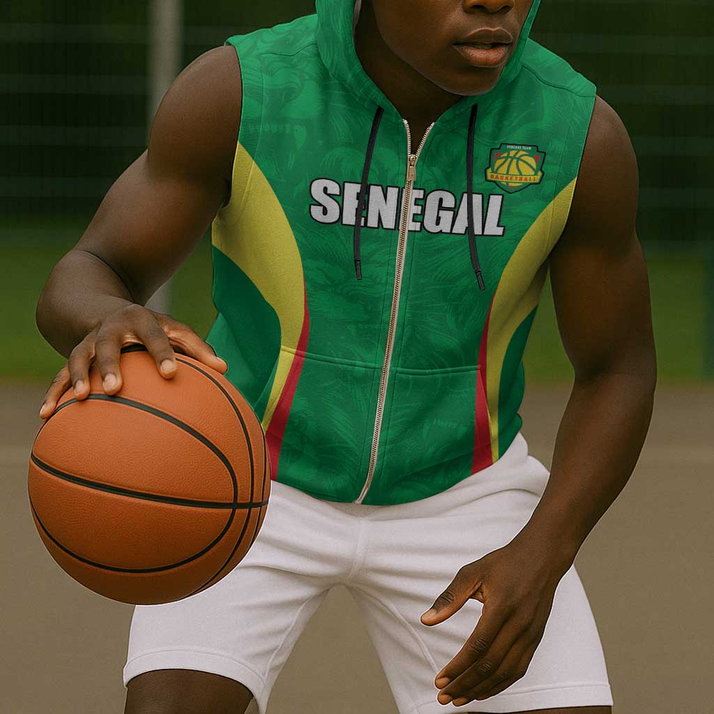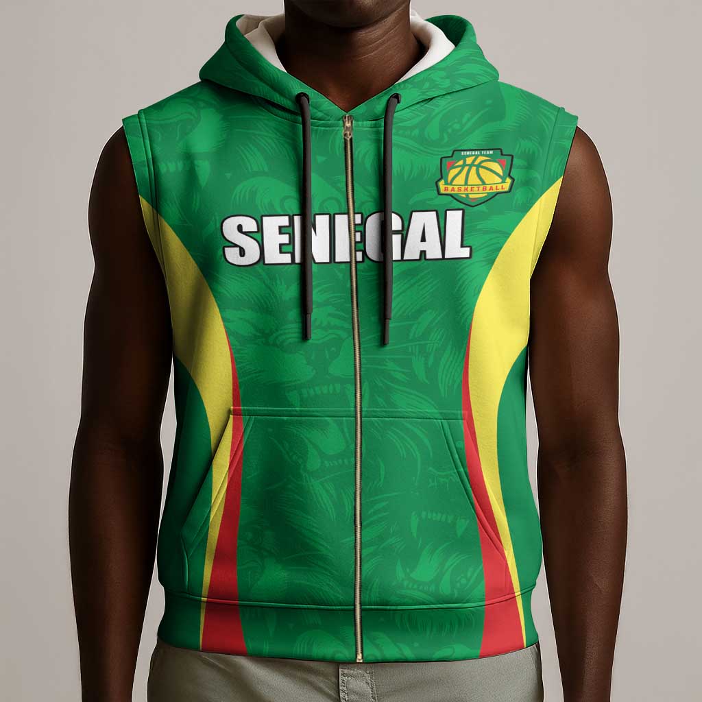 Afro Basketball Senegal Custom Sleeveless Zip Hoodie Go Champions Lions