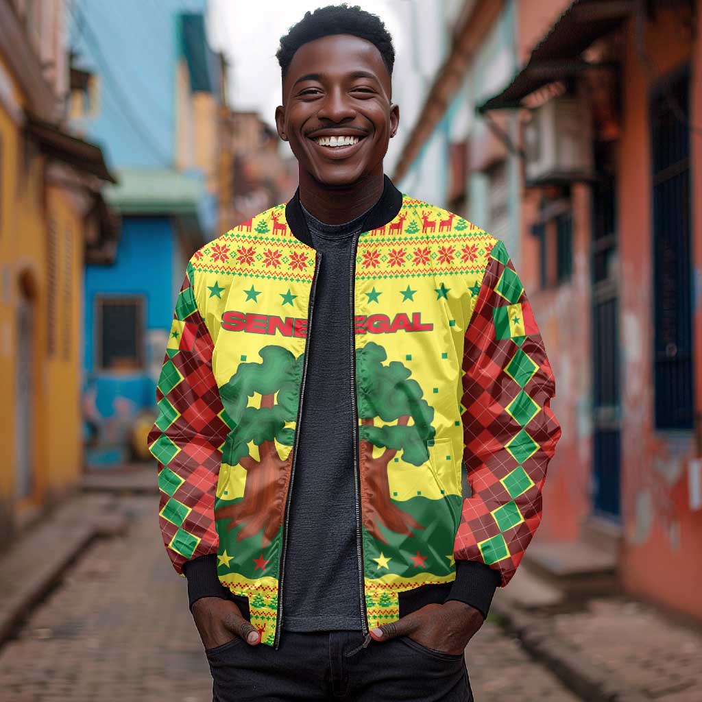 Senegal Christmas Bomber Jacket Baobab Tree and National Coat of Arms Motif