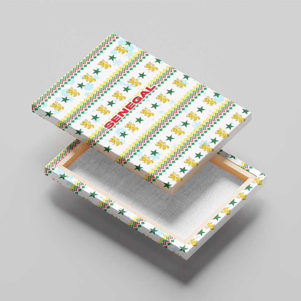 Senegal Christmas Canvas Wall Art Golden Lion and Festive Stars Motif