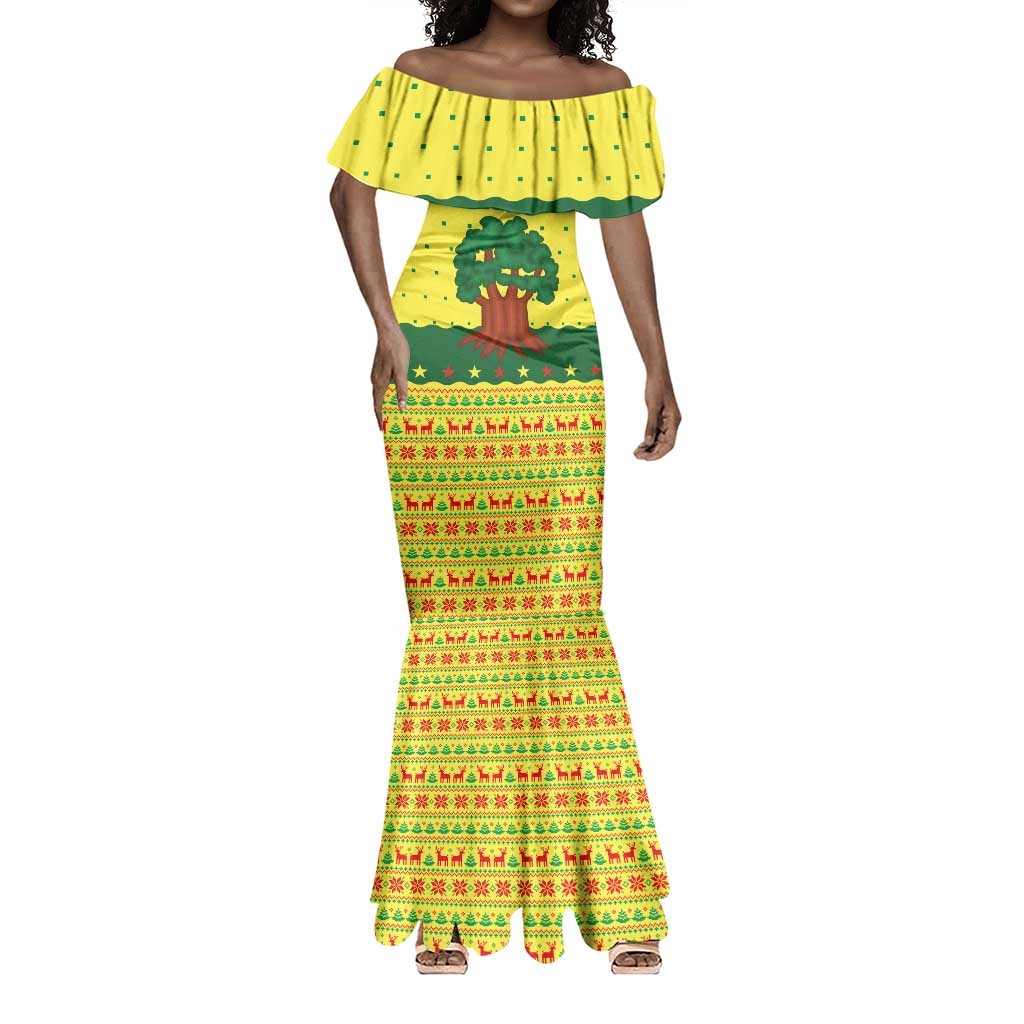 Senegal Christmas Mermaid Dress Baobab Tree and National Coat of Arms Motif
