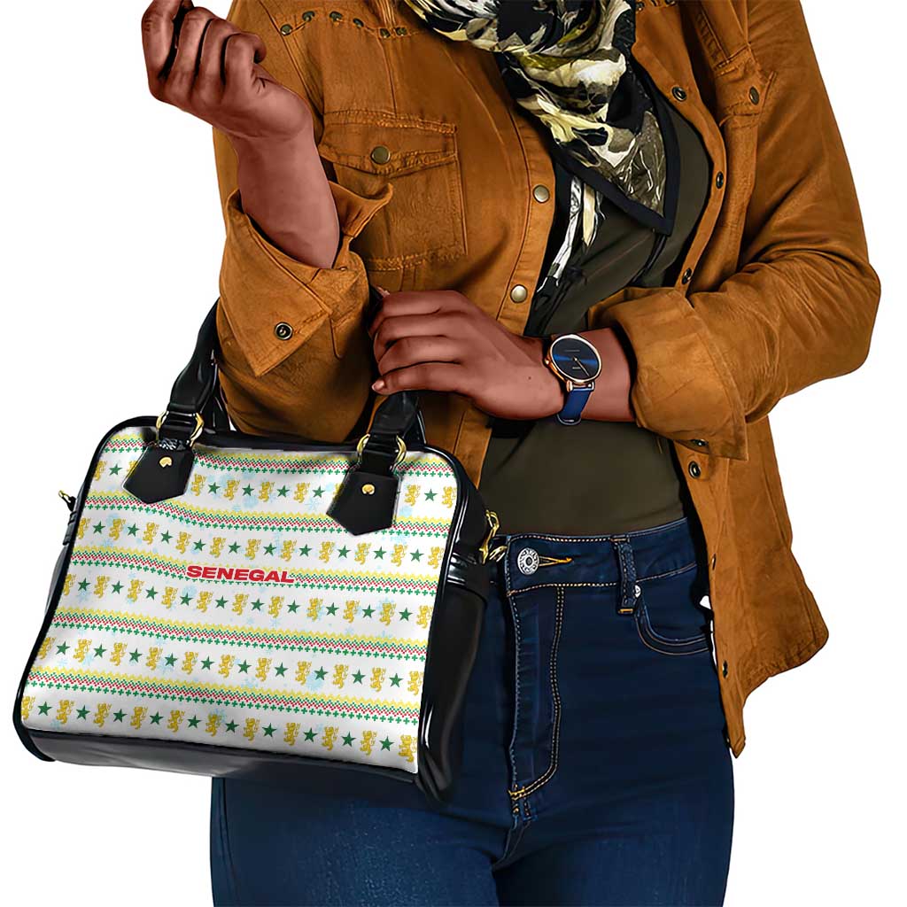 Senegal Christmas Shoulder Handbag Golden Lion and Festive Stars Motif