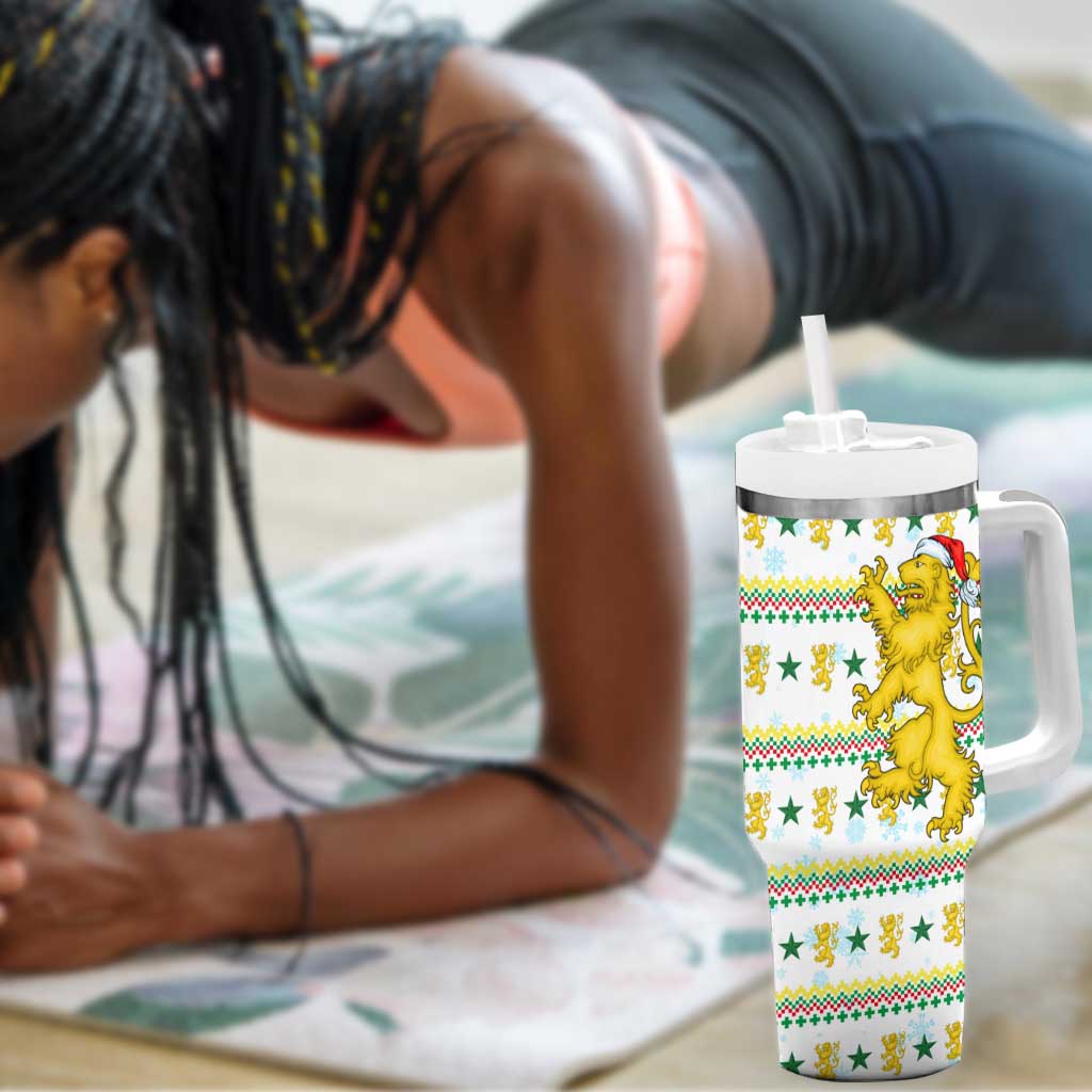 Senegal Christmas Tumbler With Handle Golden Lion and Festive Stars Motif