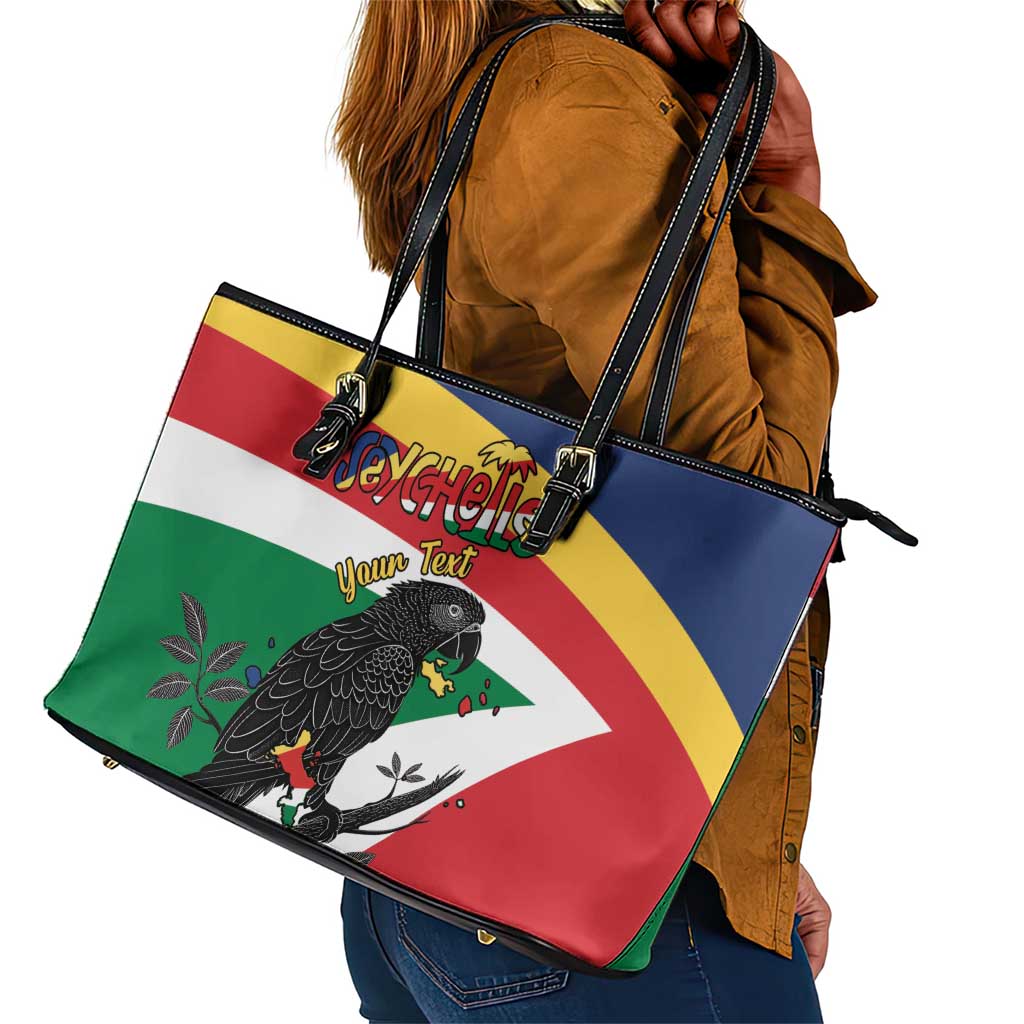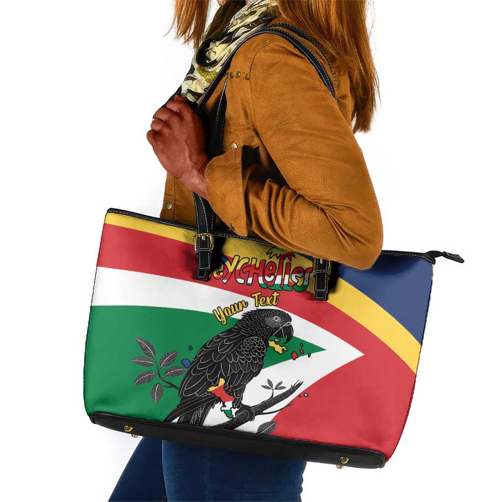 Personalized Happy Seychelles Independence Day Leather Tote Bag Black Parrot Coat Of Arms