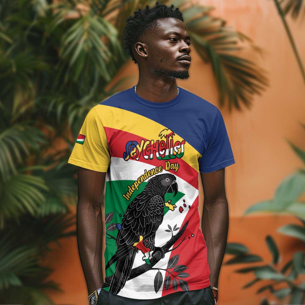 Personalized Happy Seychelles Independence Day T shirt Black Parrot Coat Of Arms