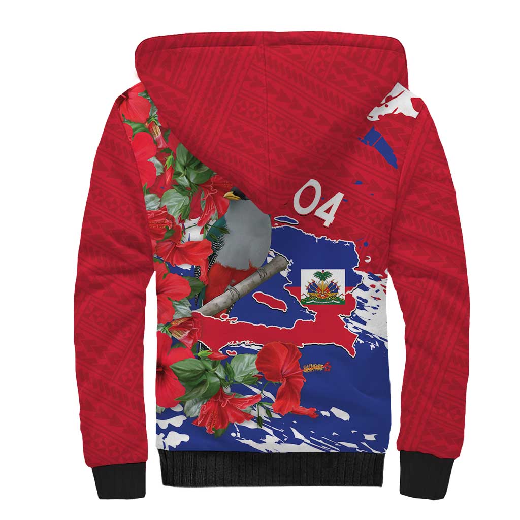 Afro Haiti Independence Day Sherpa Hoodie 1804 Proud Ayiti Map Hispaniolan Trogon
