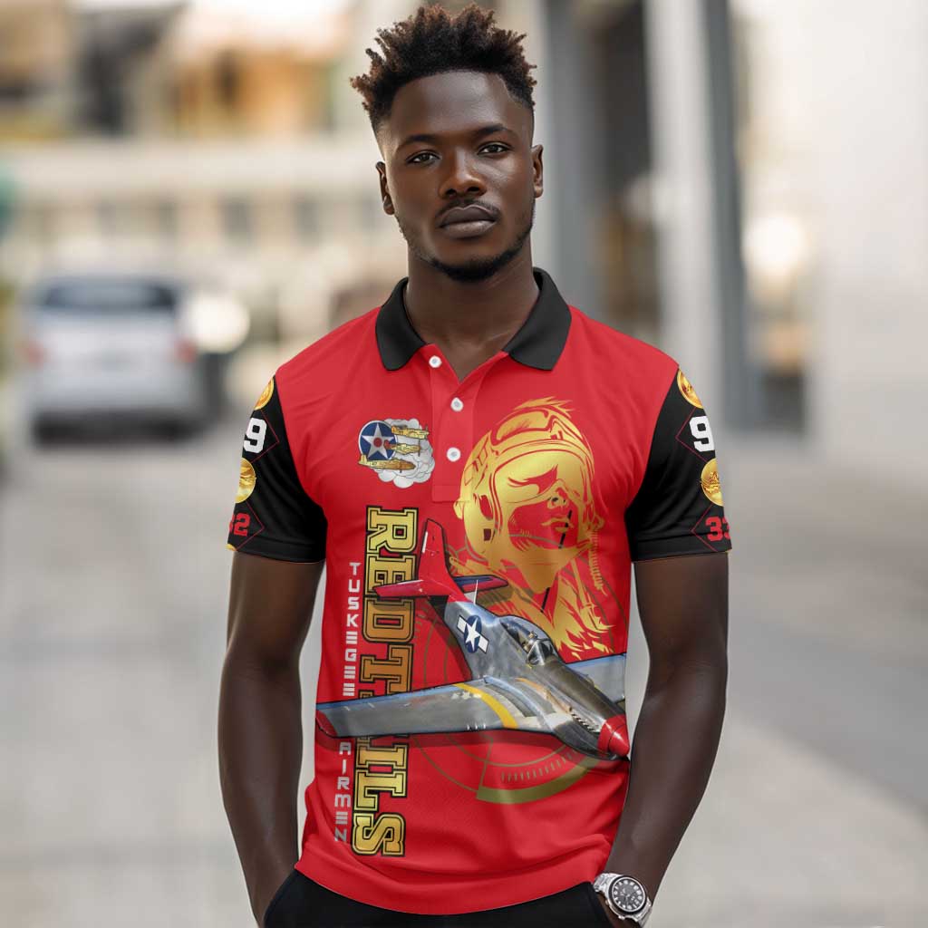 Tuskegee Red Tails Airmen Polo Shirt African American WWII Fighter Pilot Legacy
