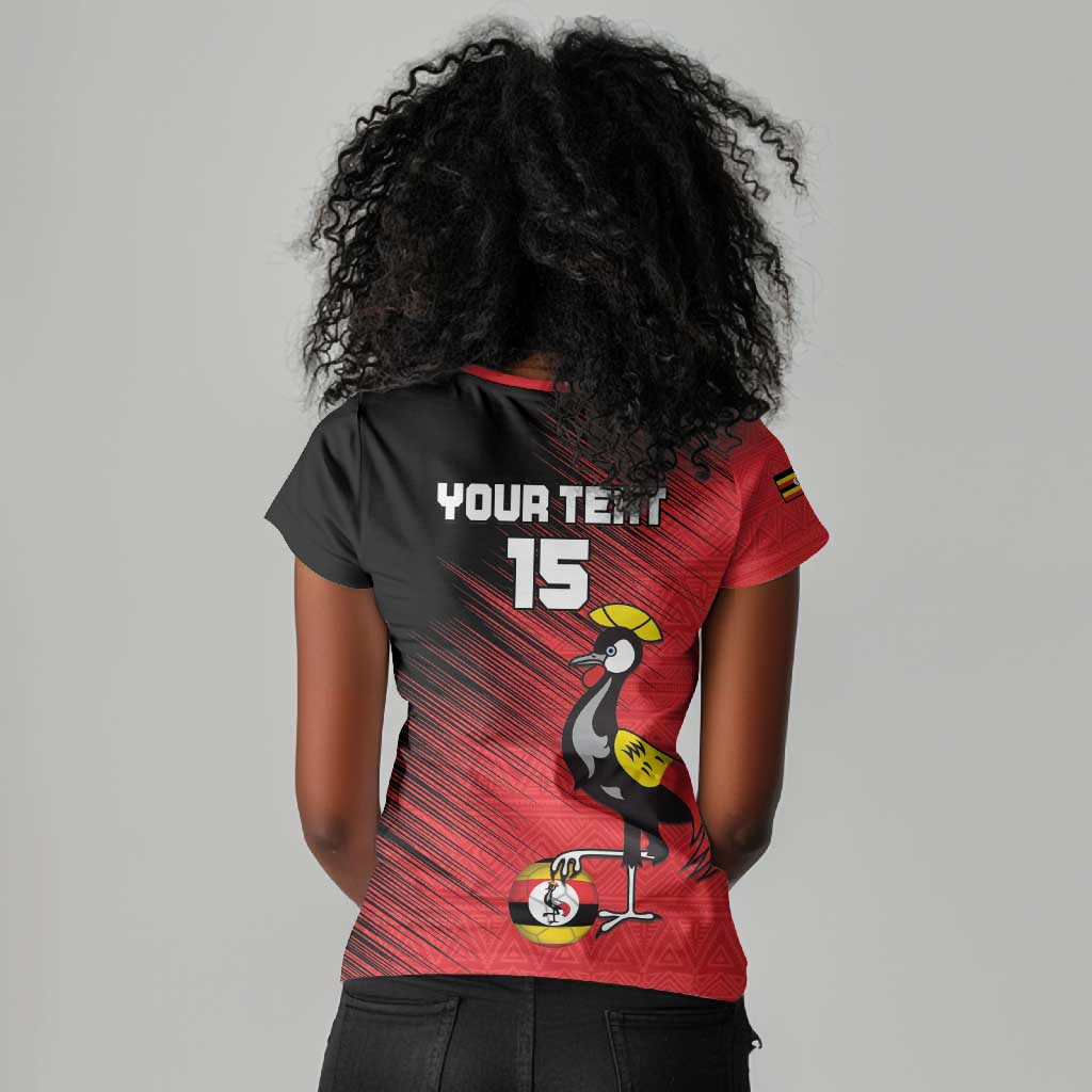 Uganda Football Custom Women V-Neck T-Shirt African Pattern Mix Grunge Style - Red Color