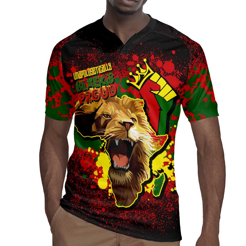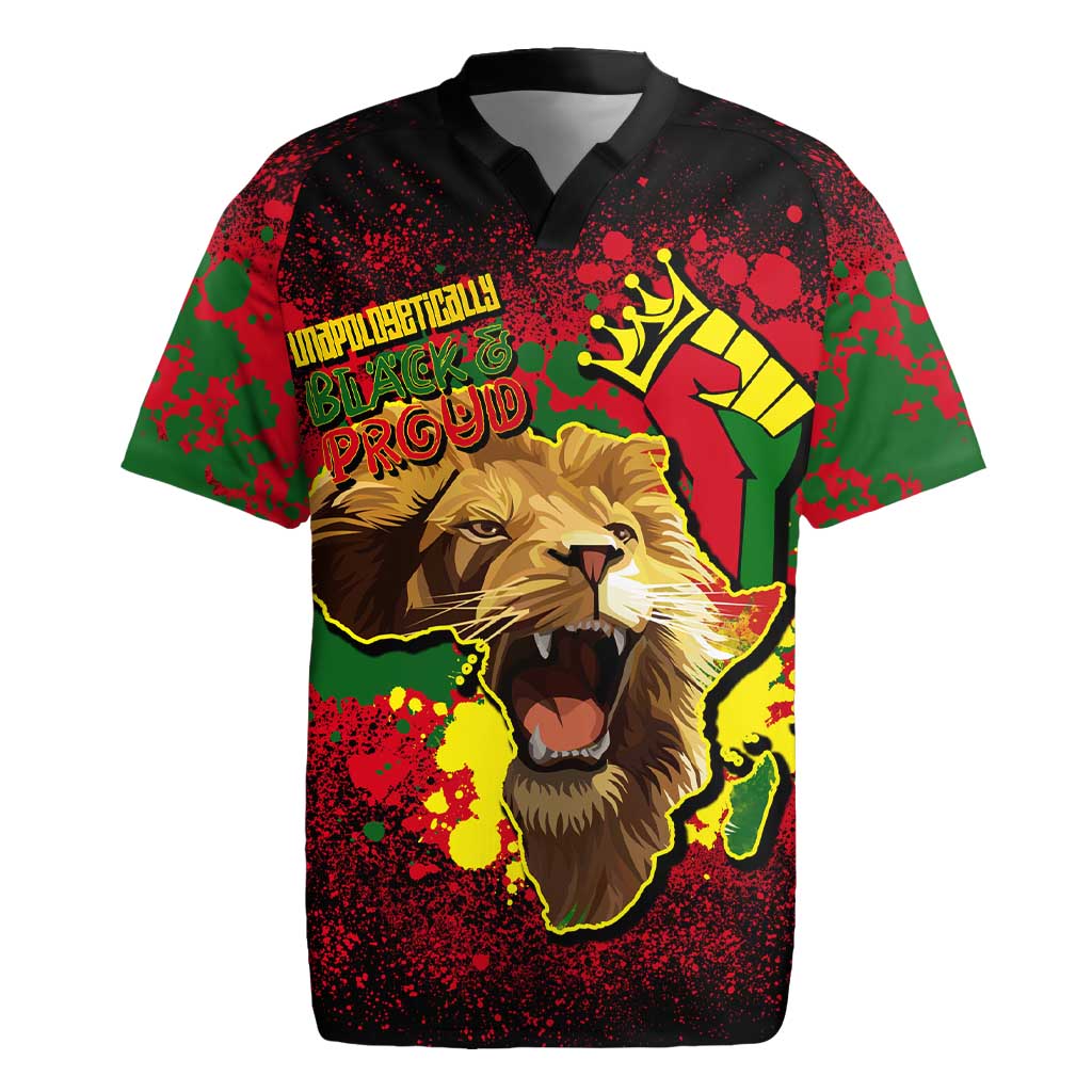 Unapologetically Black and Proud Rugby Jersey Africa Map with Lion