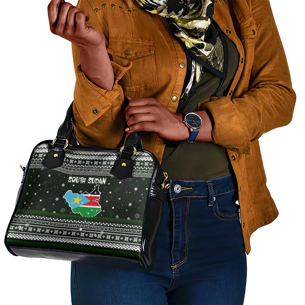 South Sudan Christmas Shoulder Handbag National Map Flag Colors and Sleeping Rhino Motif