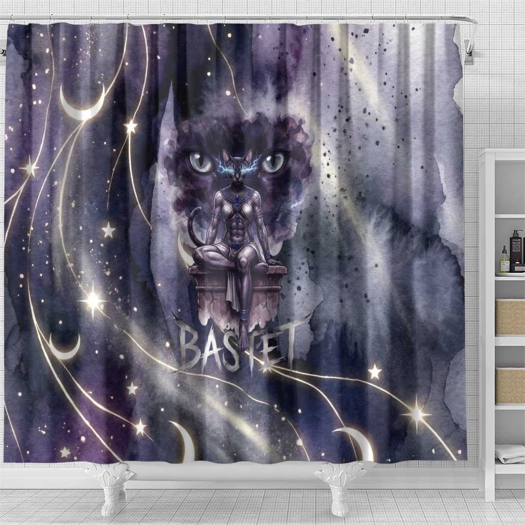 Bastet Egyptian Shower Curtain Cat Goddess Cosmic Protector Moon Magic Night Sky