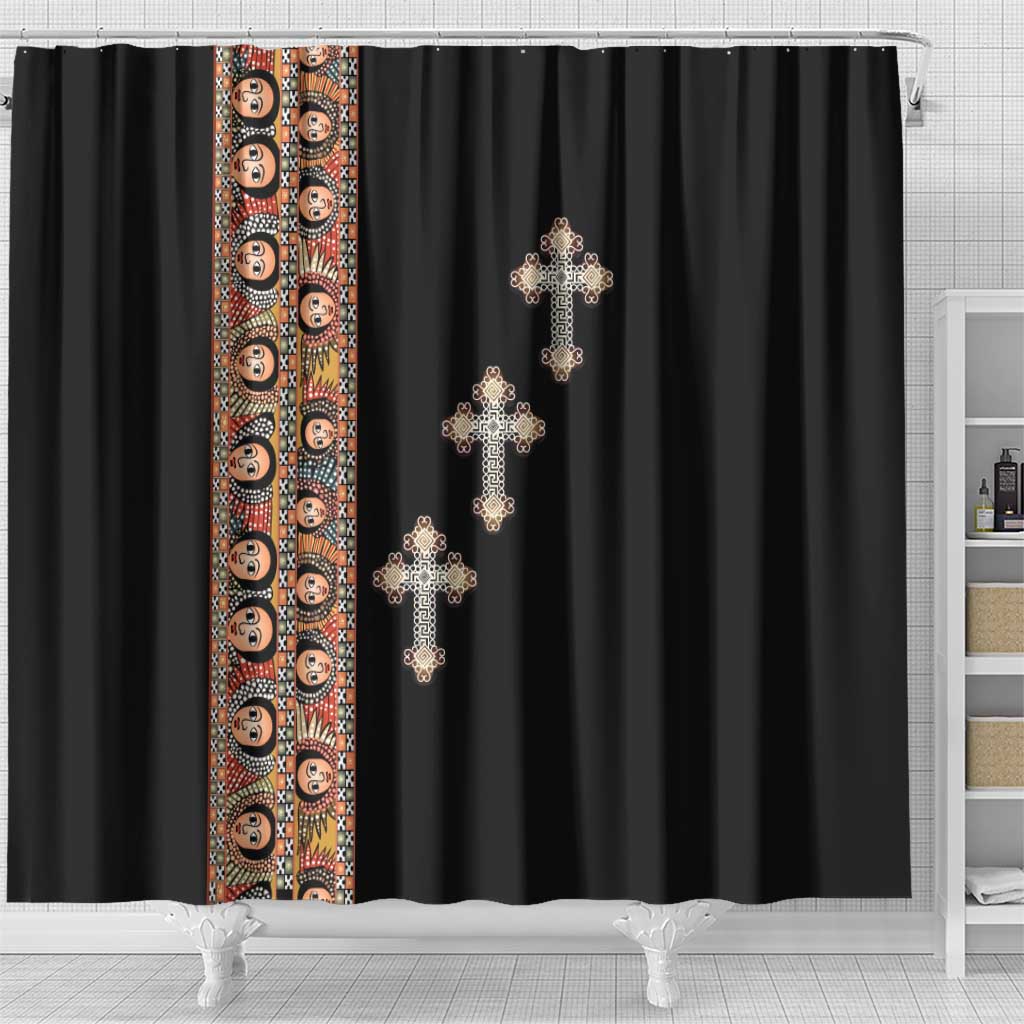 Ethiopia Angels Tilet With Cross Shower Curtain Black Color