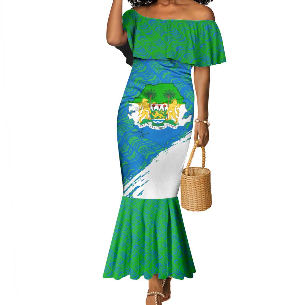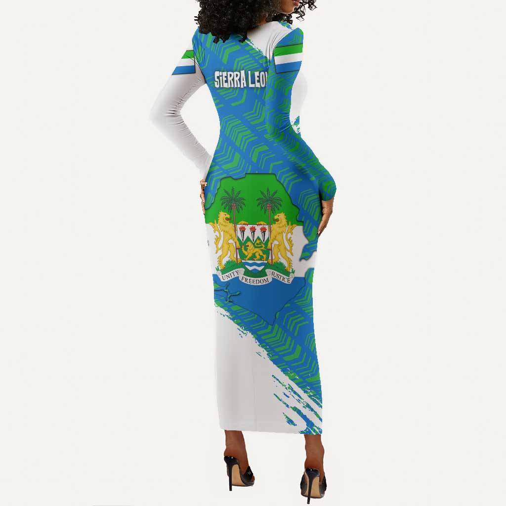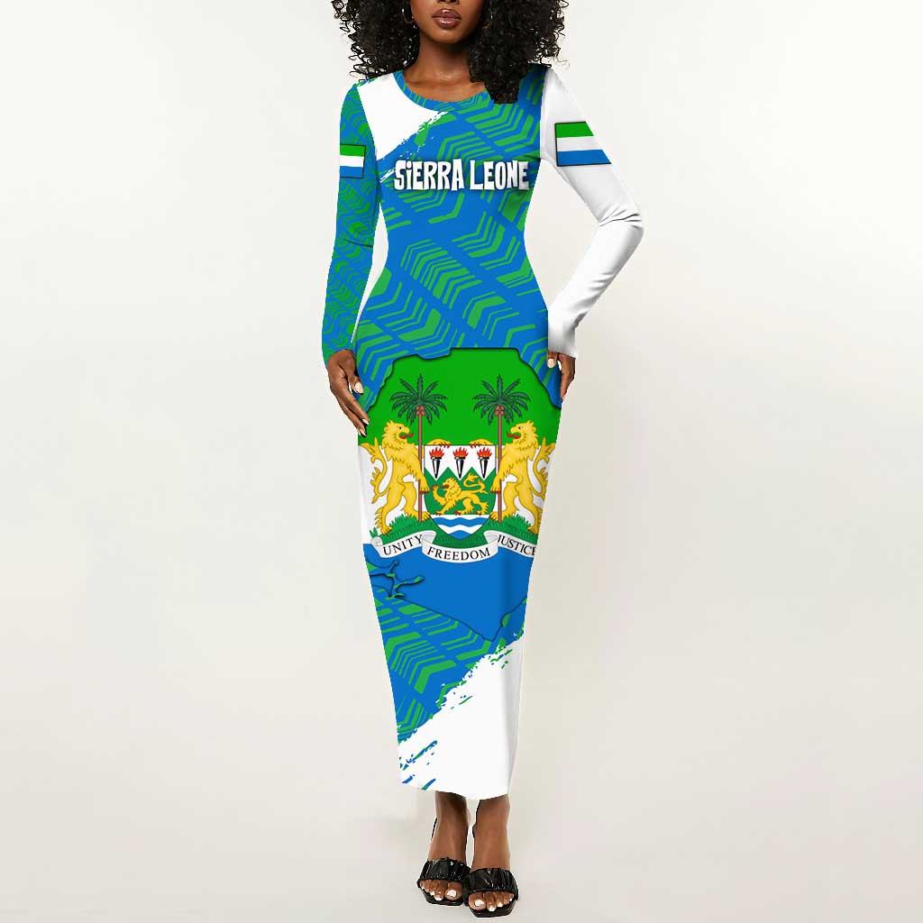 Sierra Leone Crest Long Sleeve Bodycon Dress with National Coat of Arms and Flag Colors
