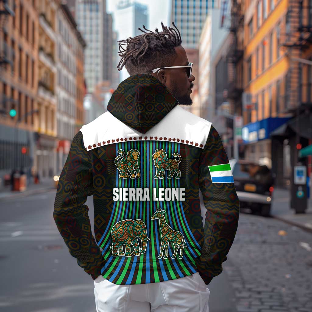 Sierra Leone Zip Hoodie - Tribal Animal Pattern Featuring Lion Elephant Giraffe and Monkey
